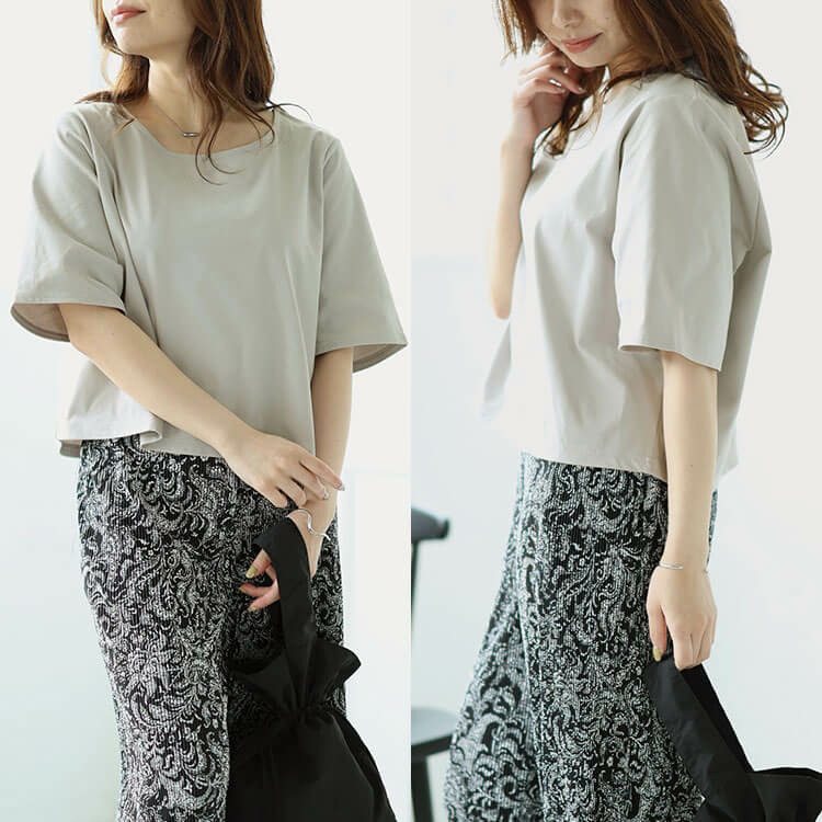 おなか周りが気になってウエストインが苦手な方にもバランスが取りやすいデザインです。