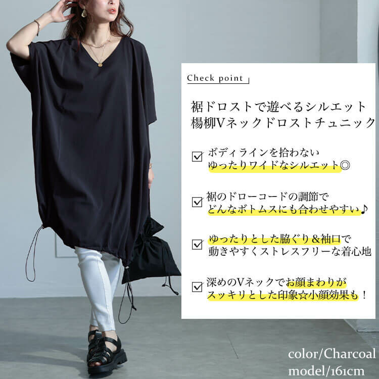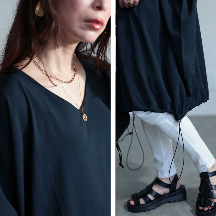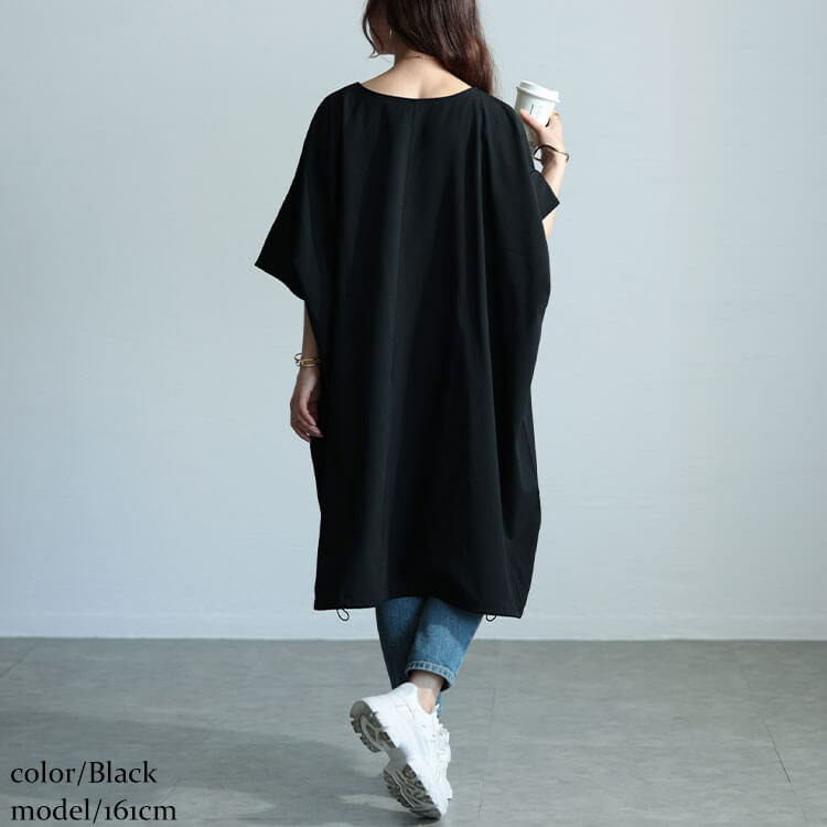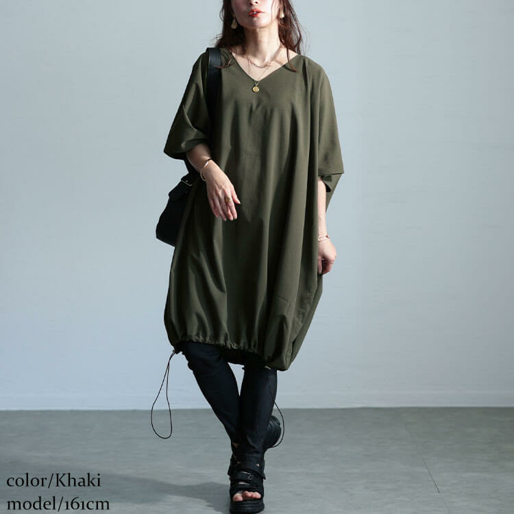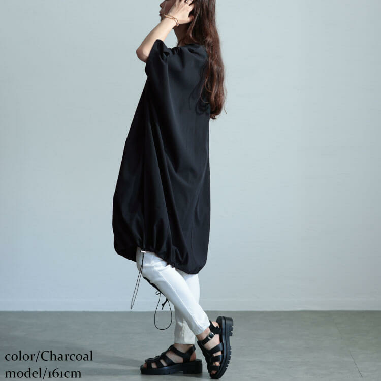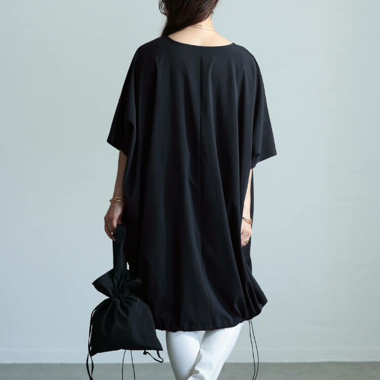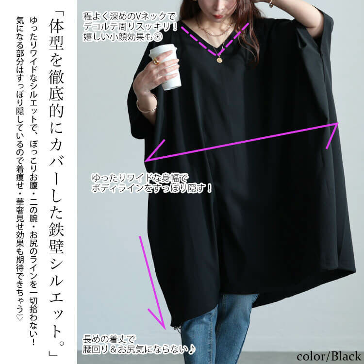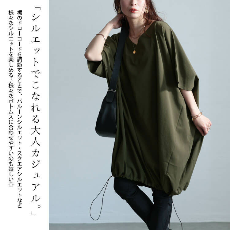 ゆったりとしたシルエットでボディラインを拾わず体型カバーも叶います。