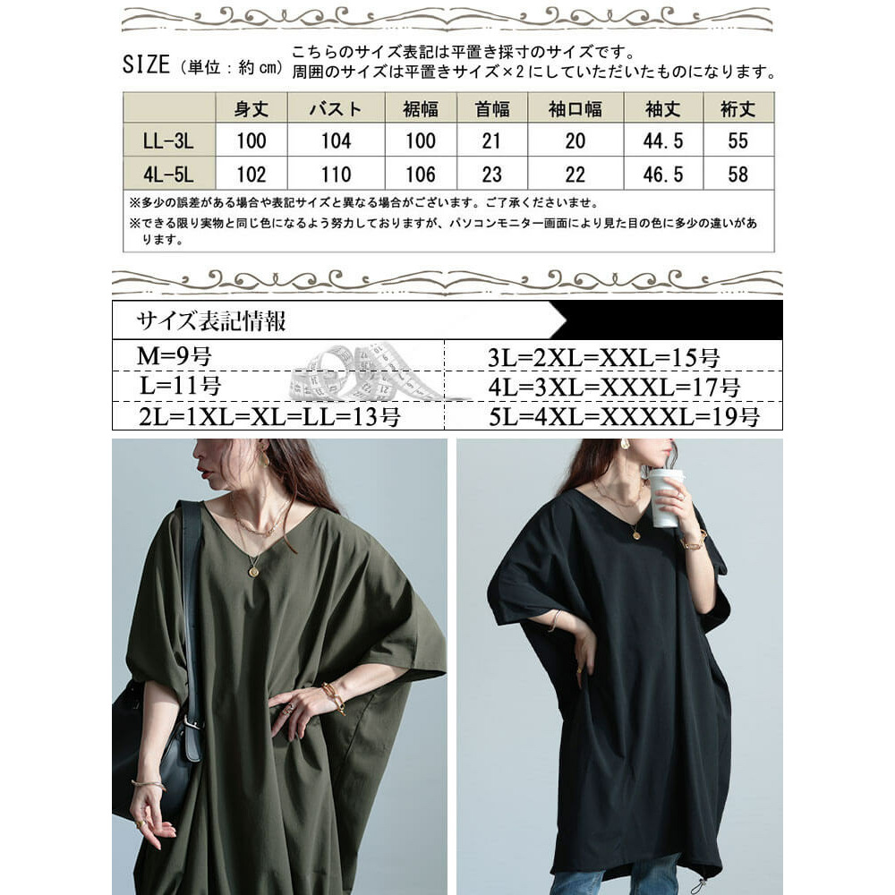 サイズ表記 LL-3L 4L-5L 身丈 100cm 102cm バスト 104cm 110cm 裾幅 100cm 106cm 首幅 21cm 23cm 袖口幅 20cm 22cm 袖丈 44.5cm 46.5cm 裄丈 55cm 58cm
