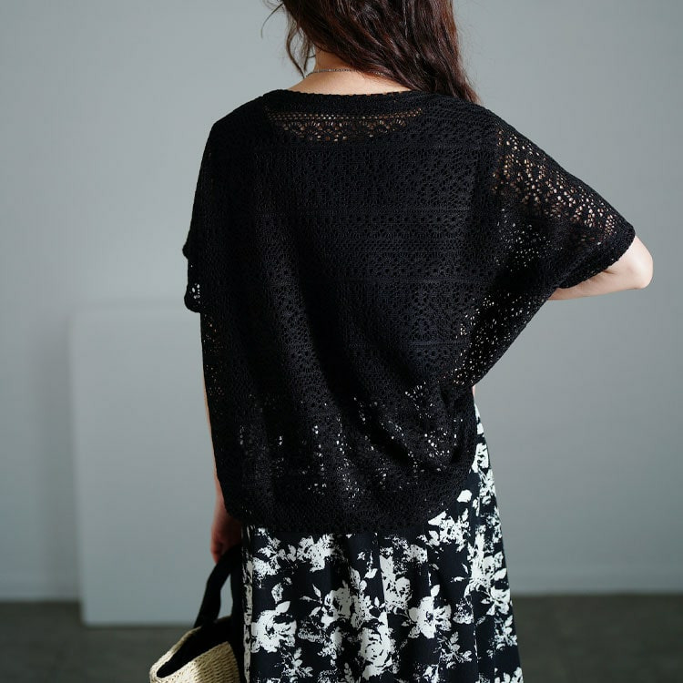 かぎ編みが肌との美しいコントラストを作ってくれます。