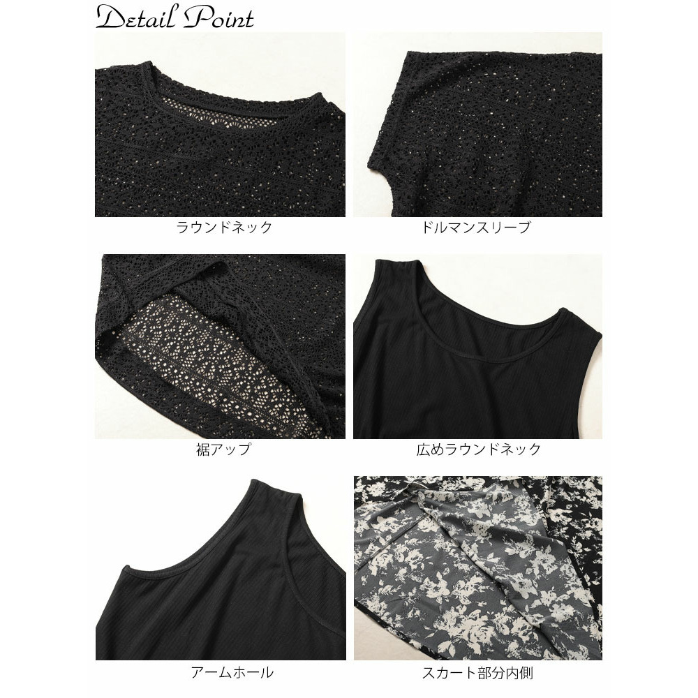• 大きいサイズ レディース かぎ編みニットトップス&花柄ドッキングワンピース2点セット13