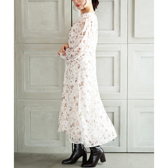 繊細な小花柄とレース切替が美しい、上品フェミニンな印象をプラス。