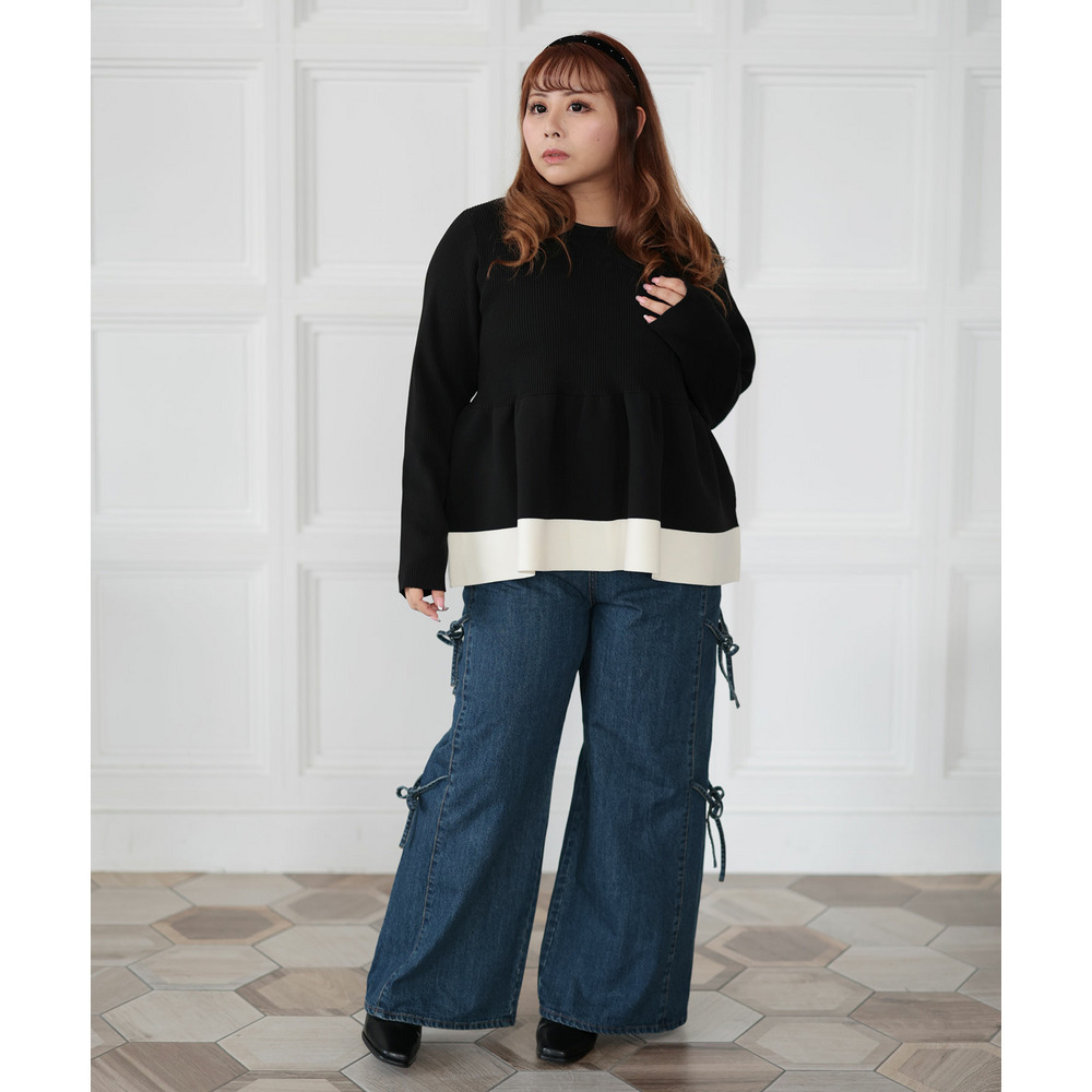 ボリューム感あるシルエットで脚のラインを拾わない設計。