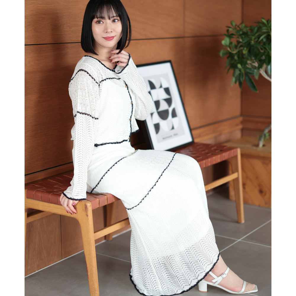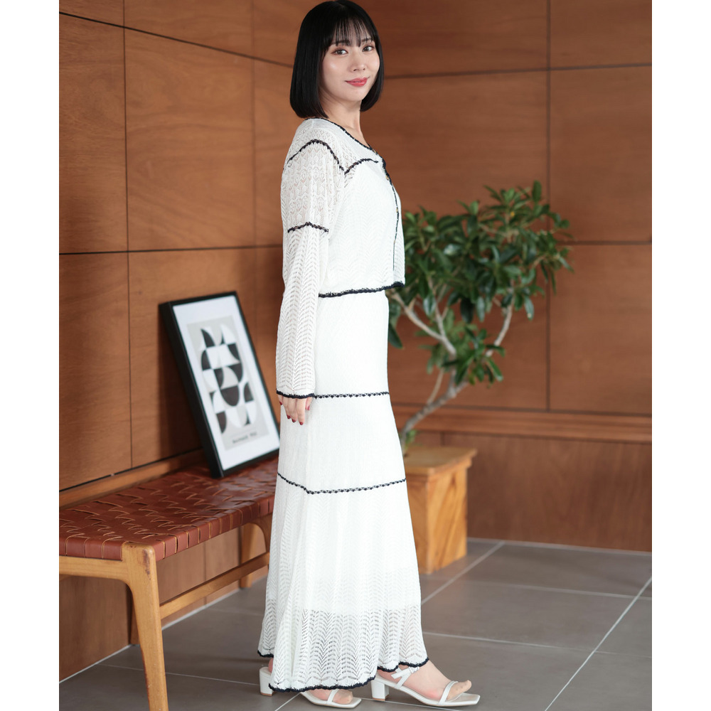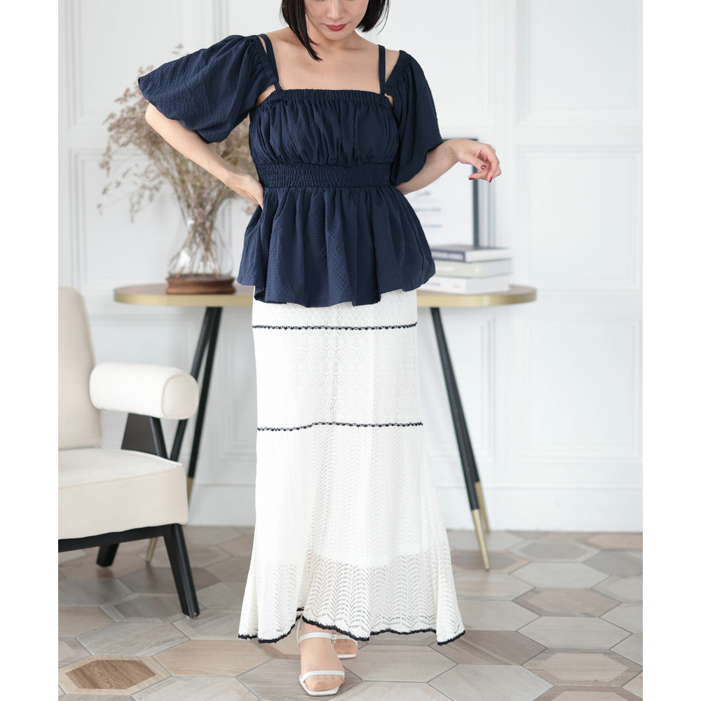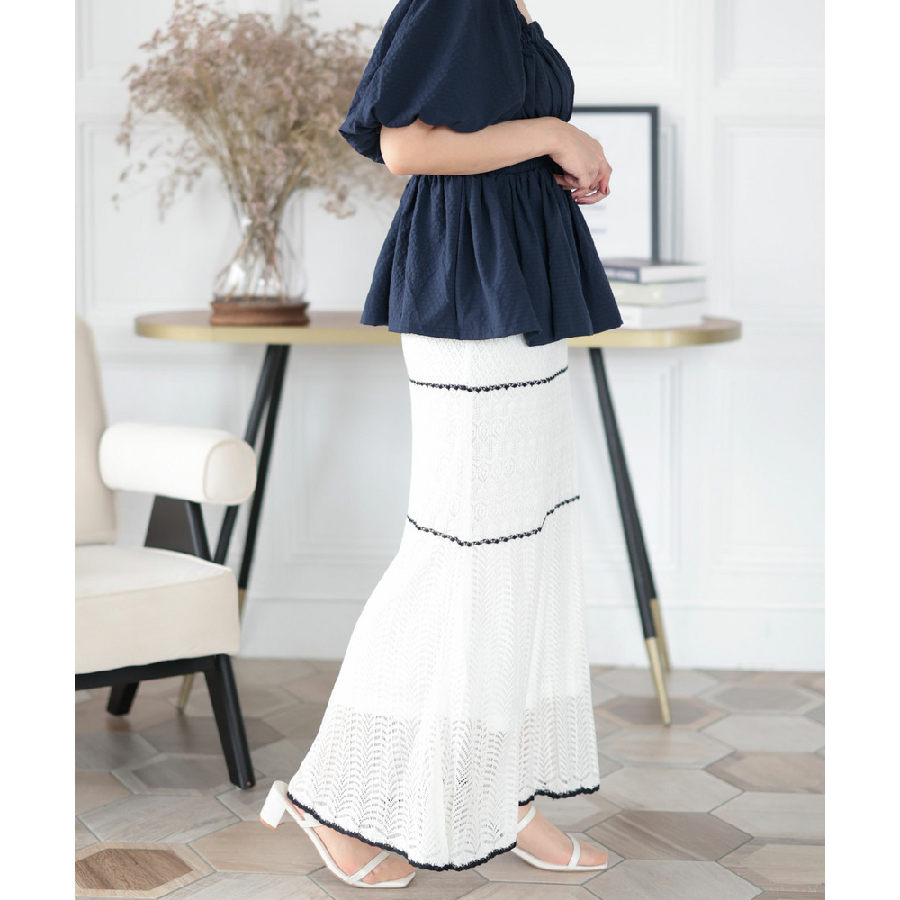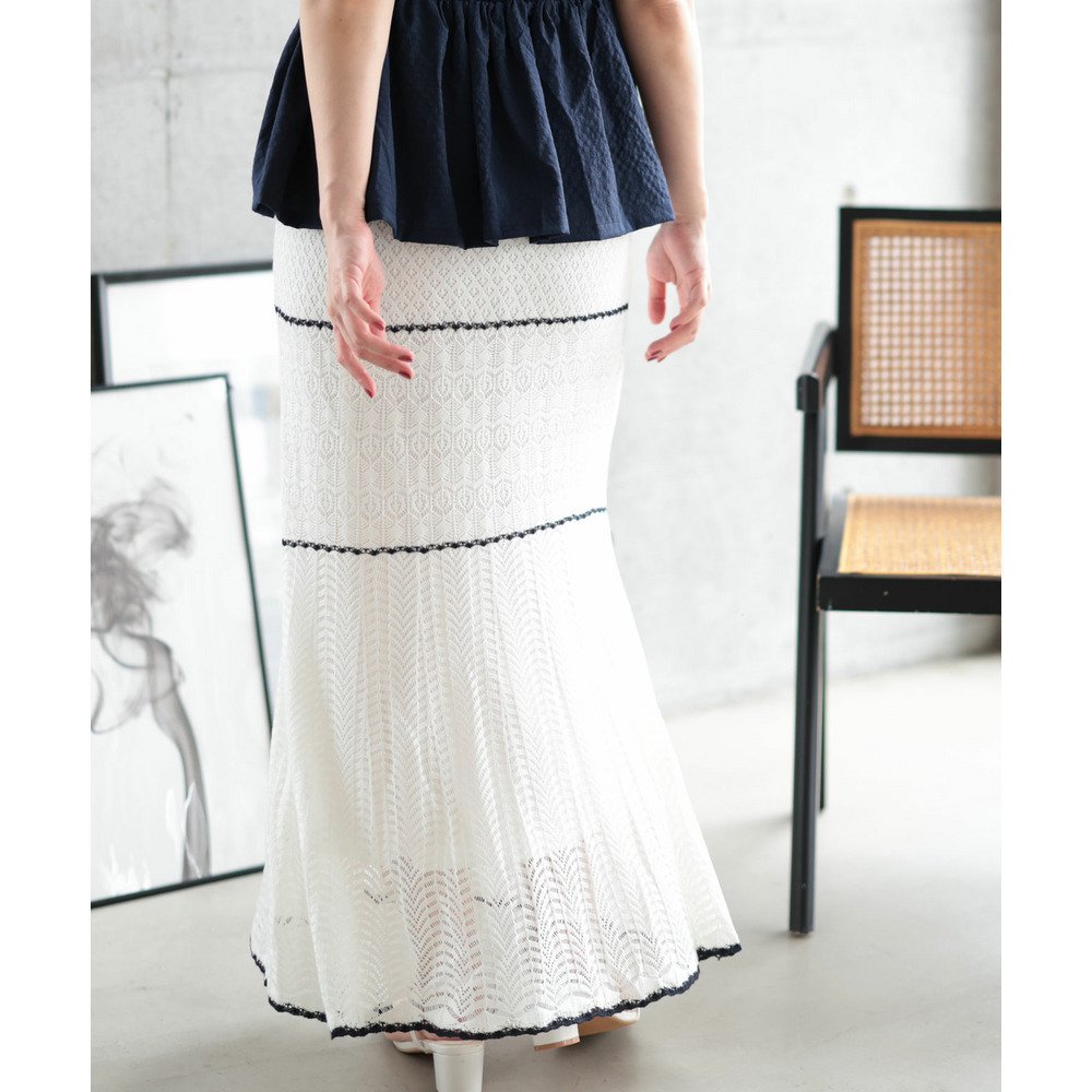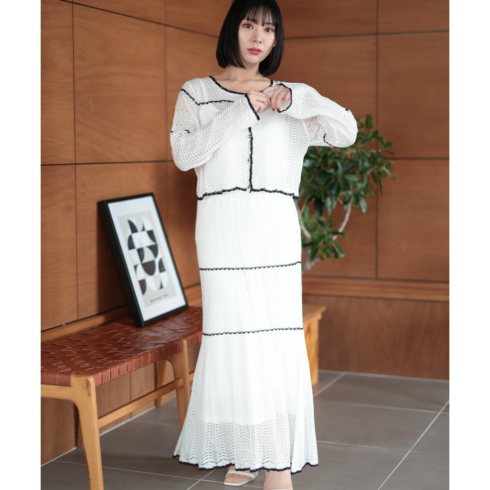 スカートはマーメイド風に広がる美シルエットで、女性らしさを引き立てます。