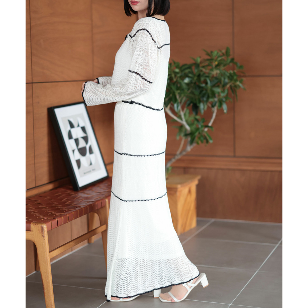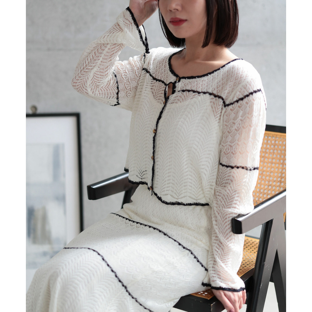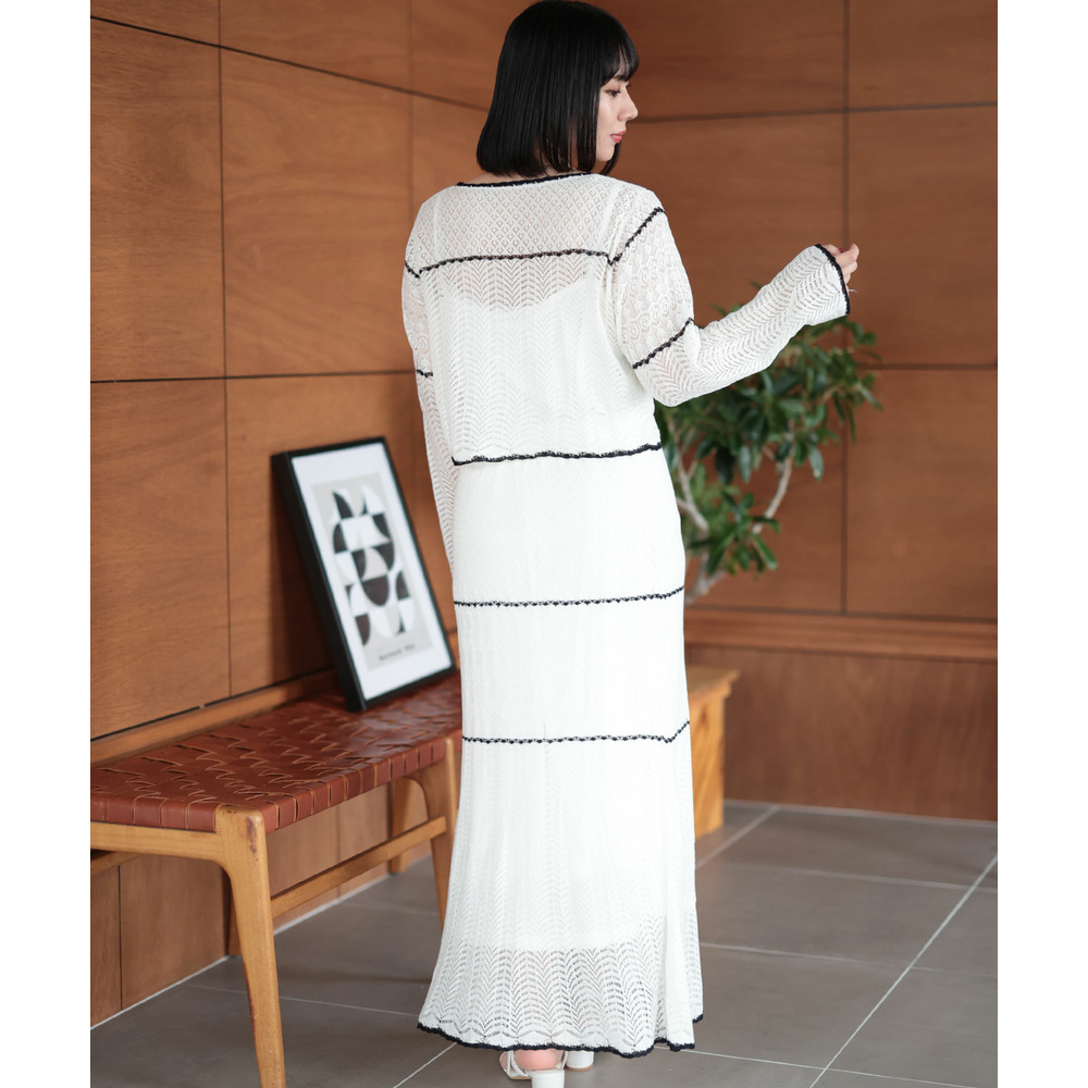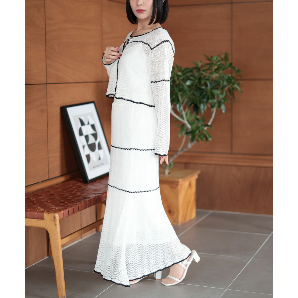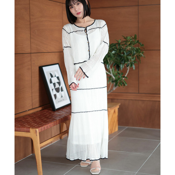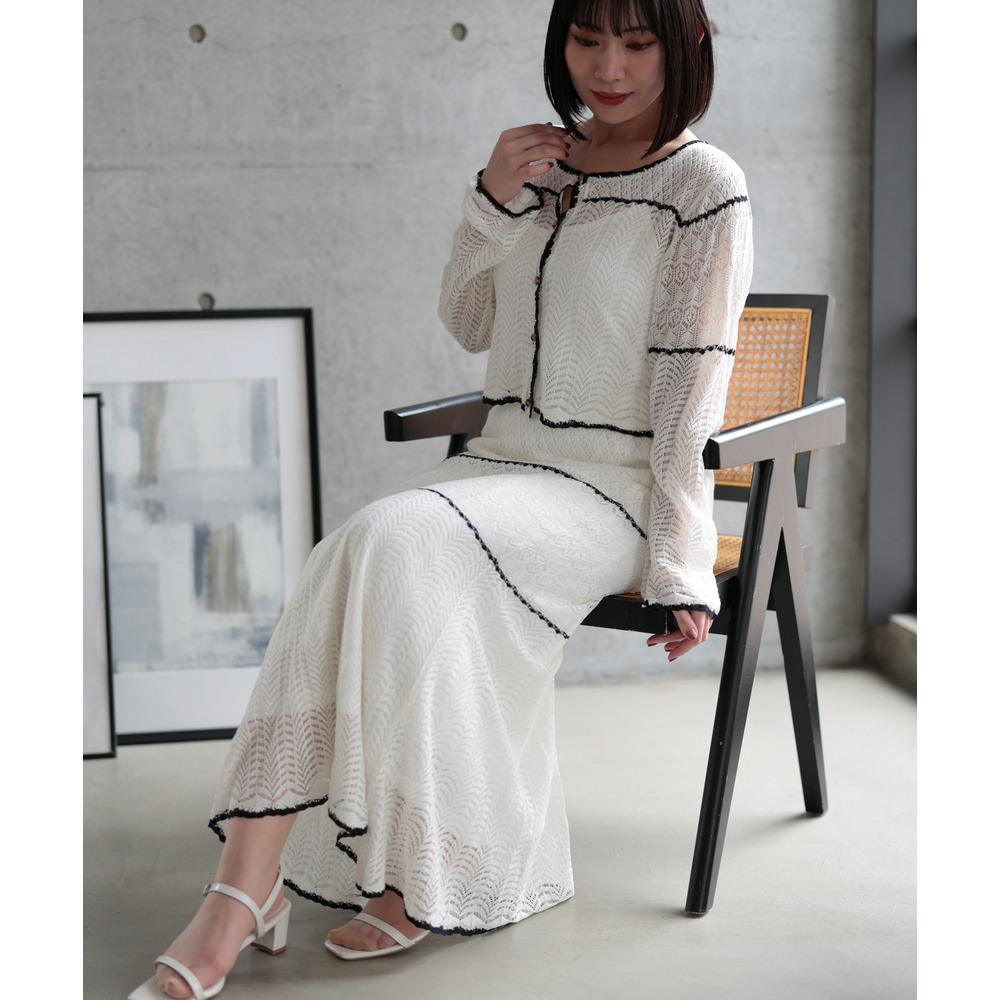 スカートはマーメイド風に広がる美シルエットで、女性らしさを引き立てます。
