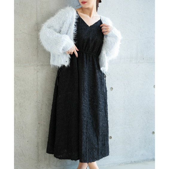 トレンド感たっぷりのシャギー調素材で仕立てたキャミソールワンピース。