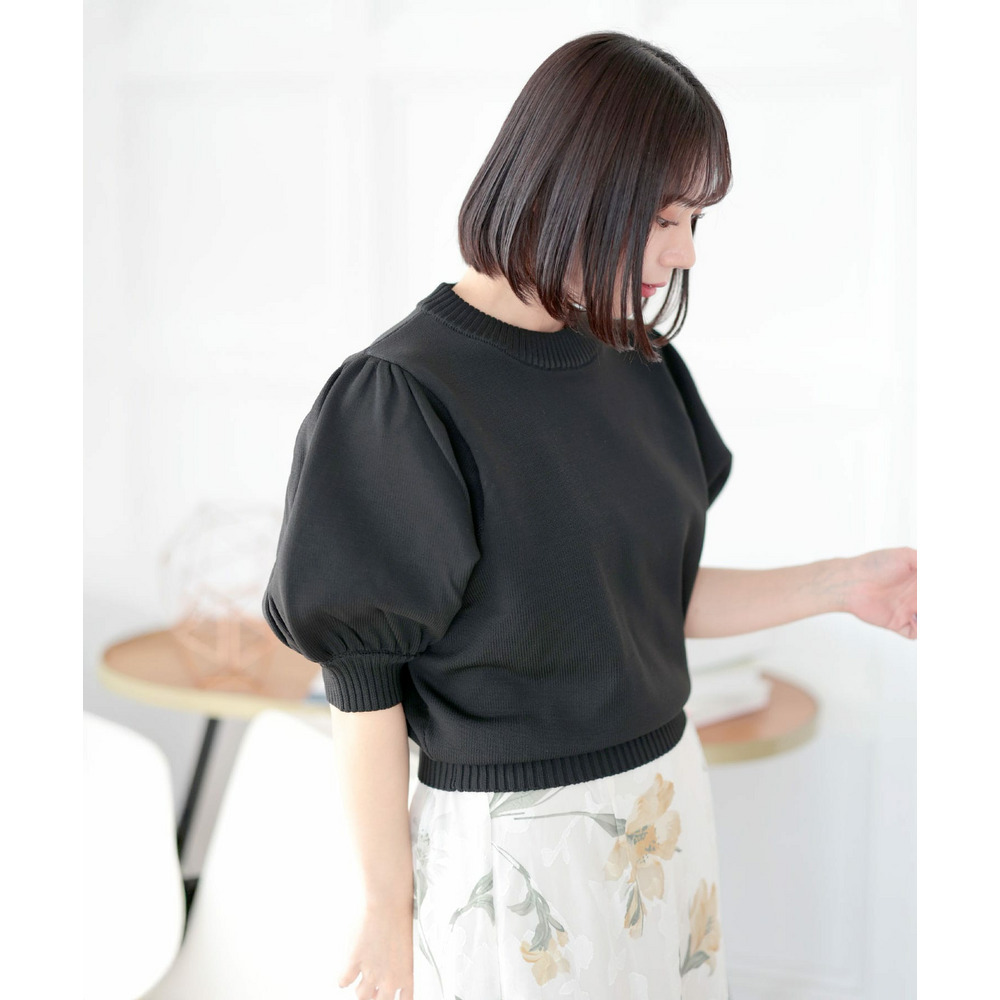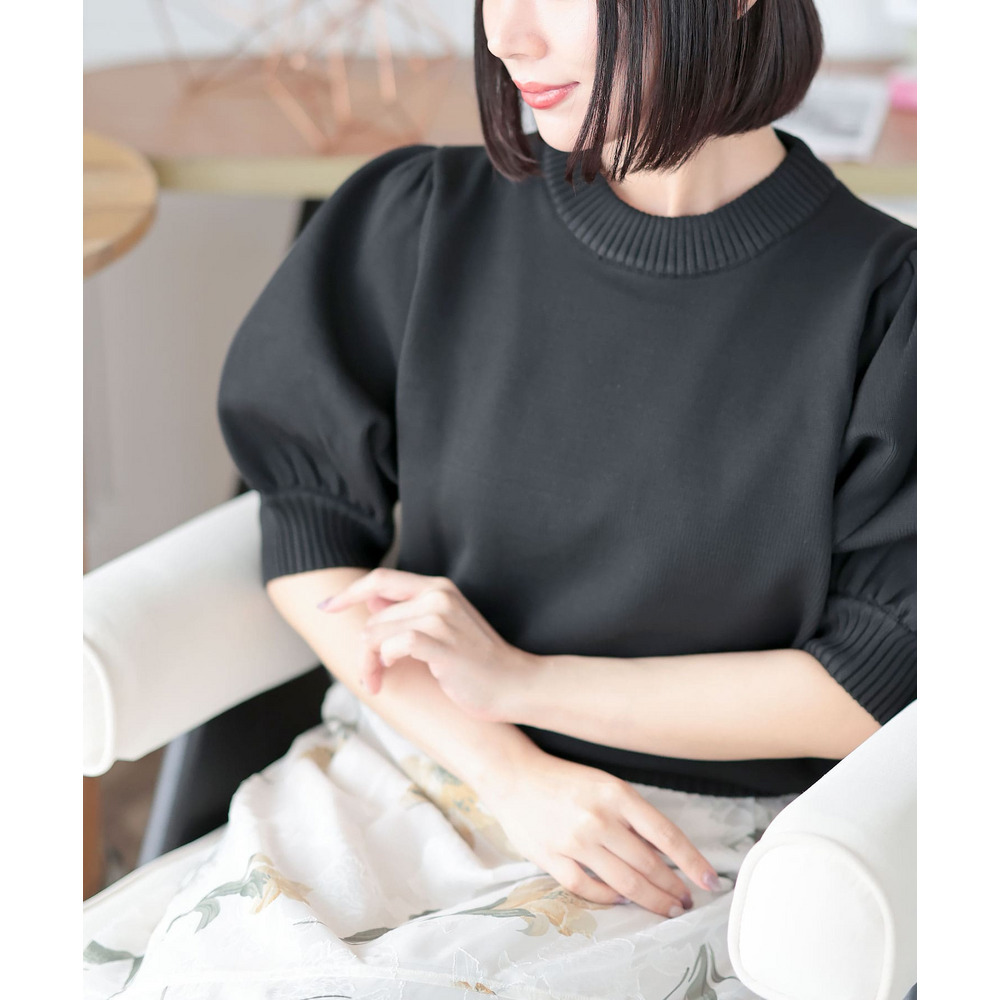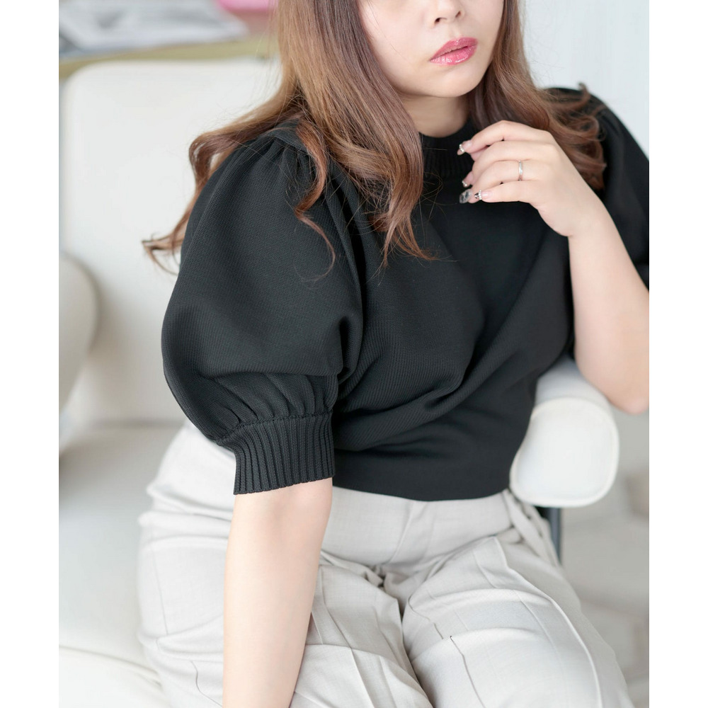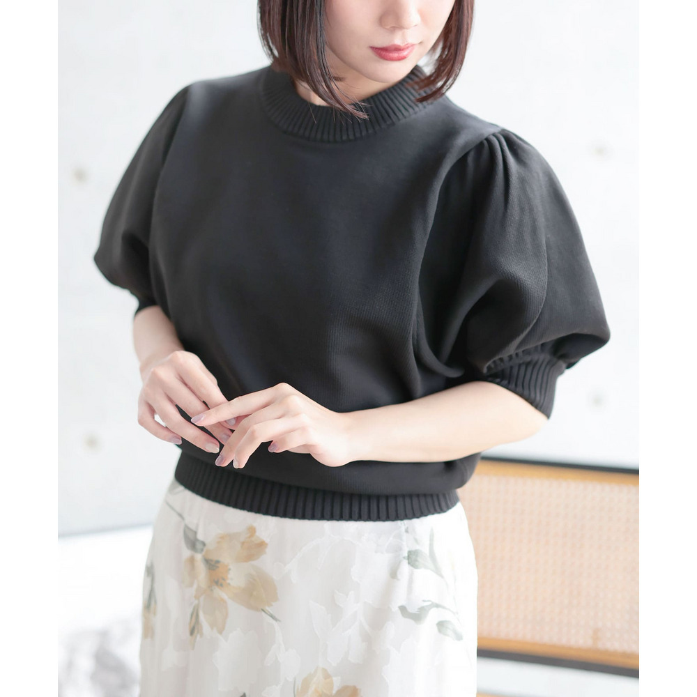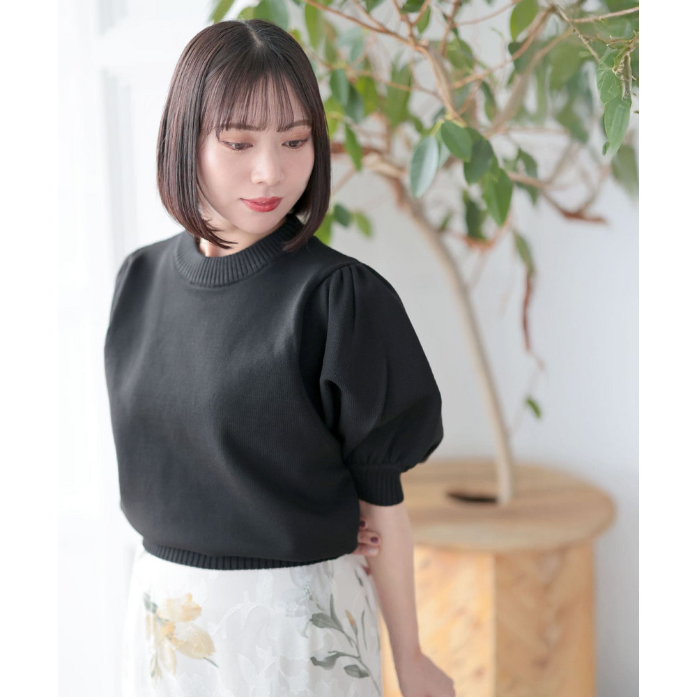 伸縮性のあるもちもちとしたスポンジニット素材で、着心地も良い一枚。