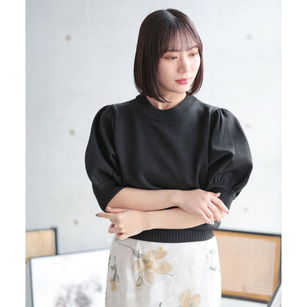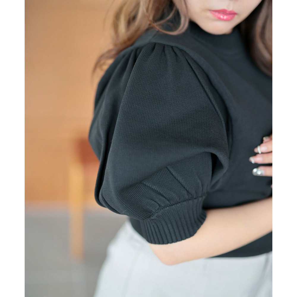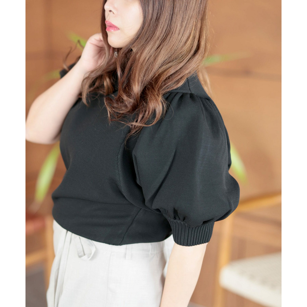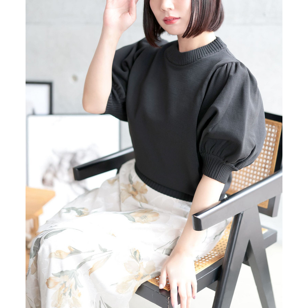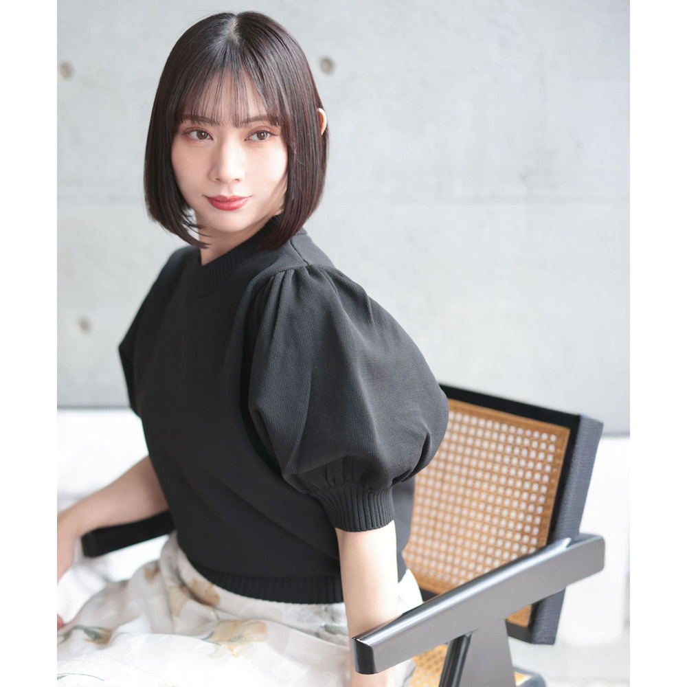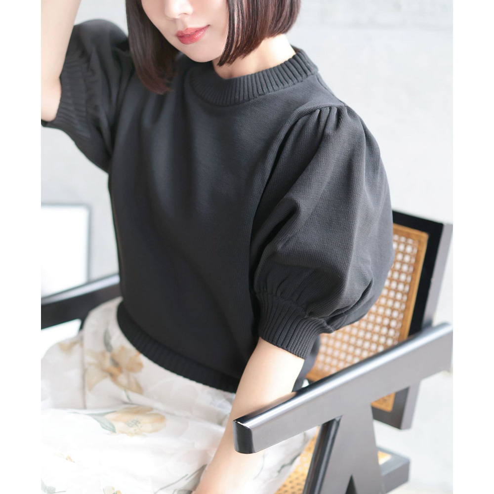 伸縮性のあるもちもちとしたスポンジニット素材で、着心地も良い一枚。
