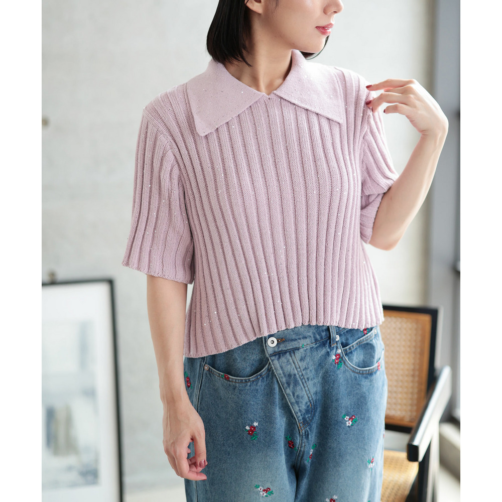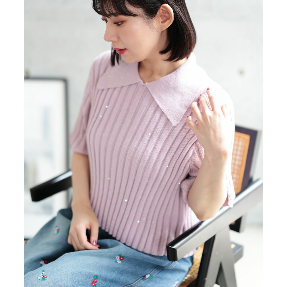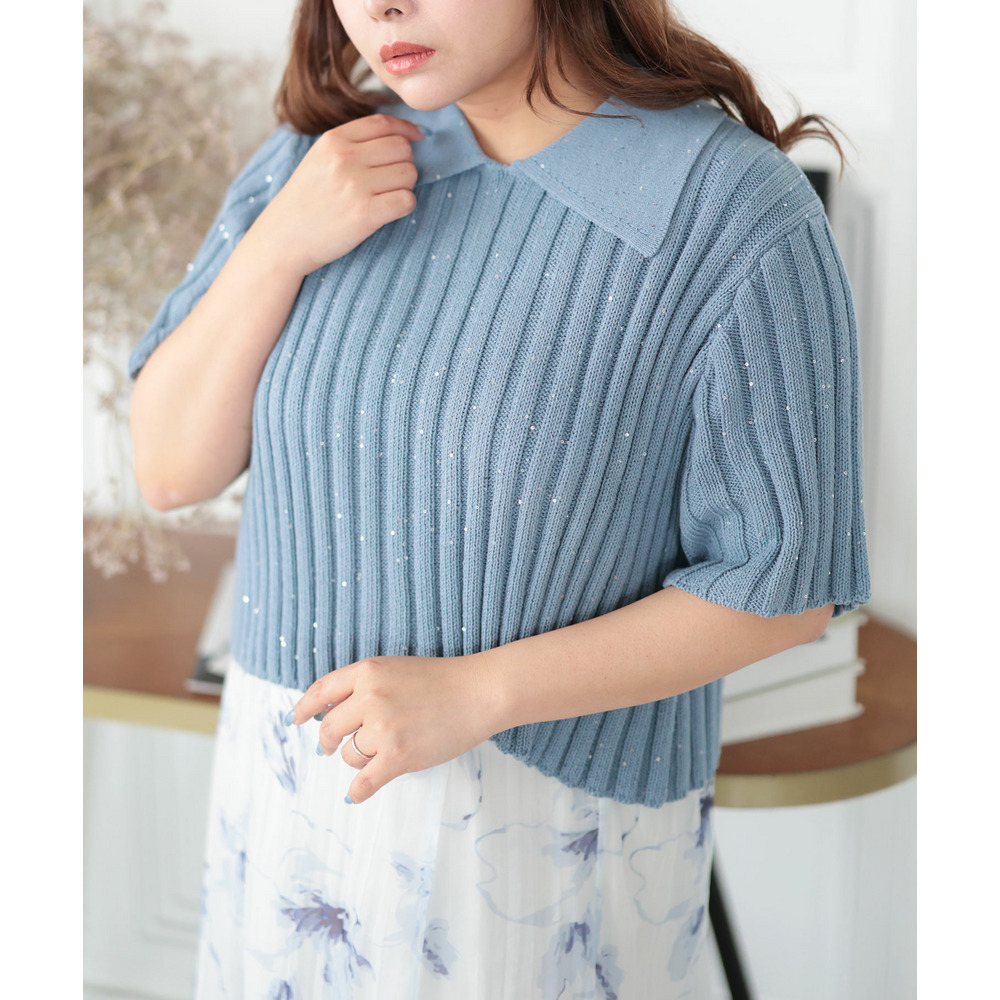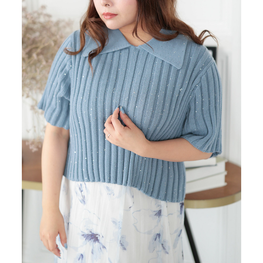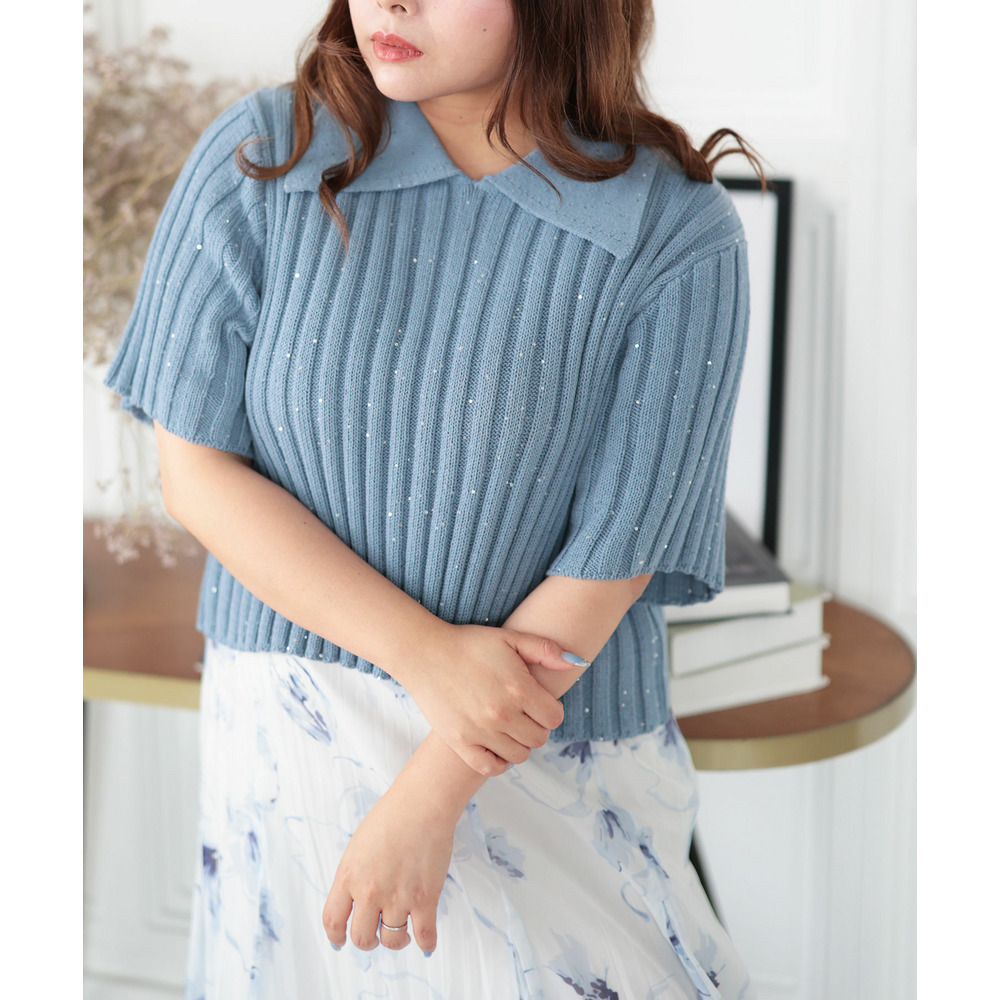 • 大きいサイズ レディース スパンコール衿付きニット1
