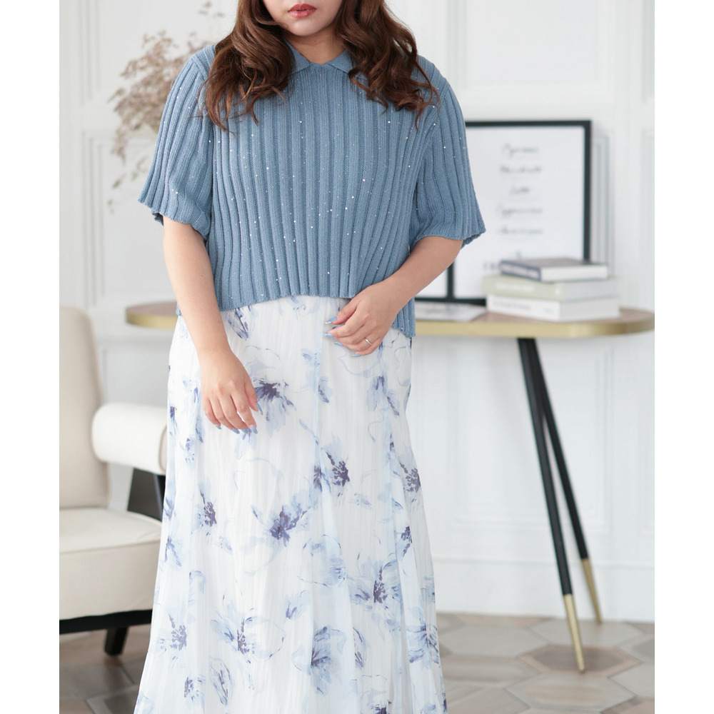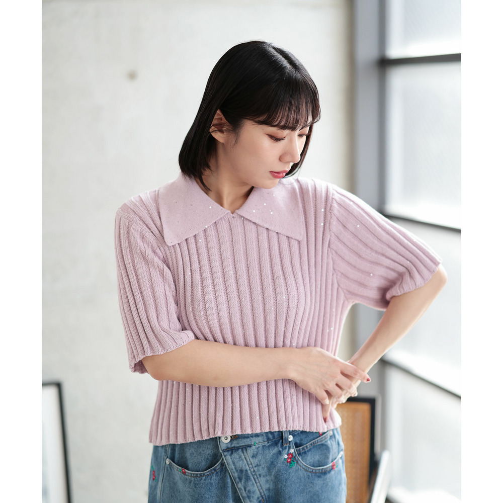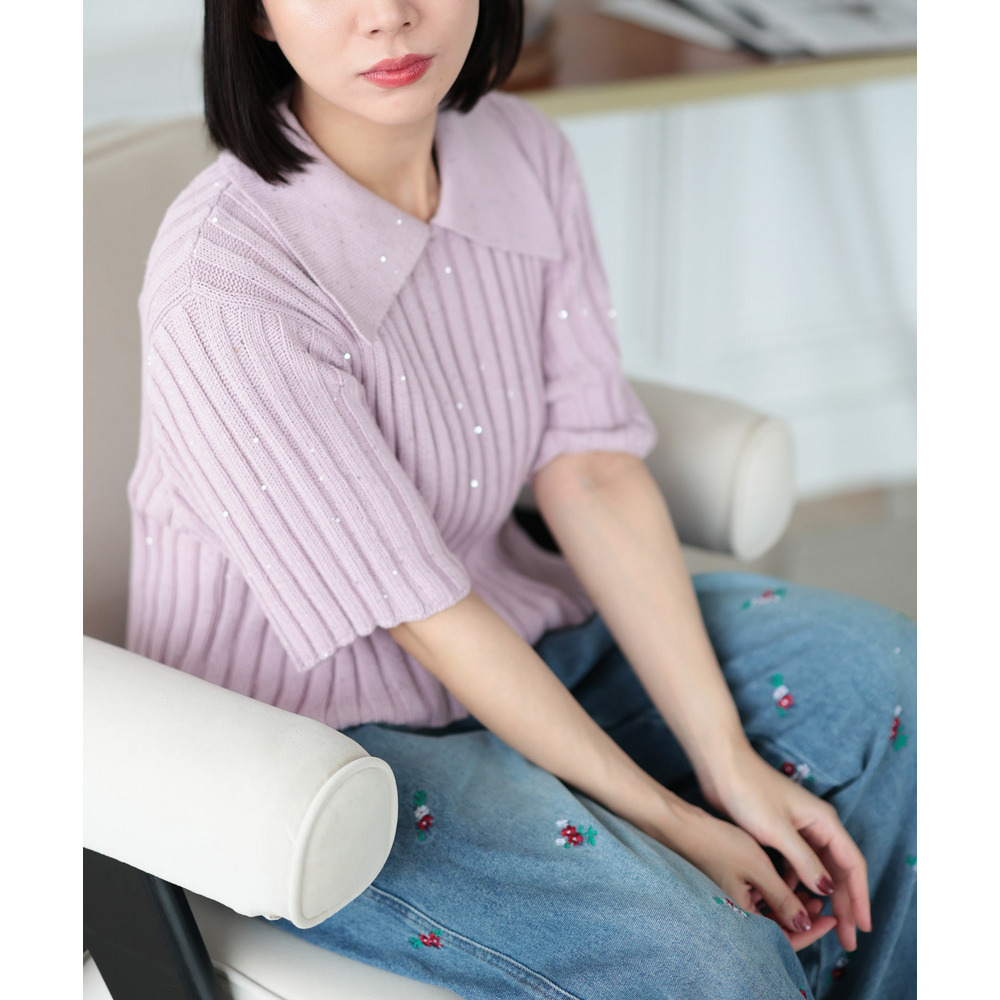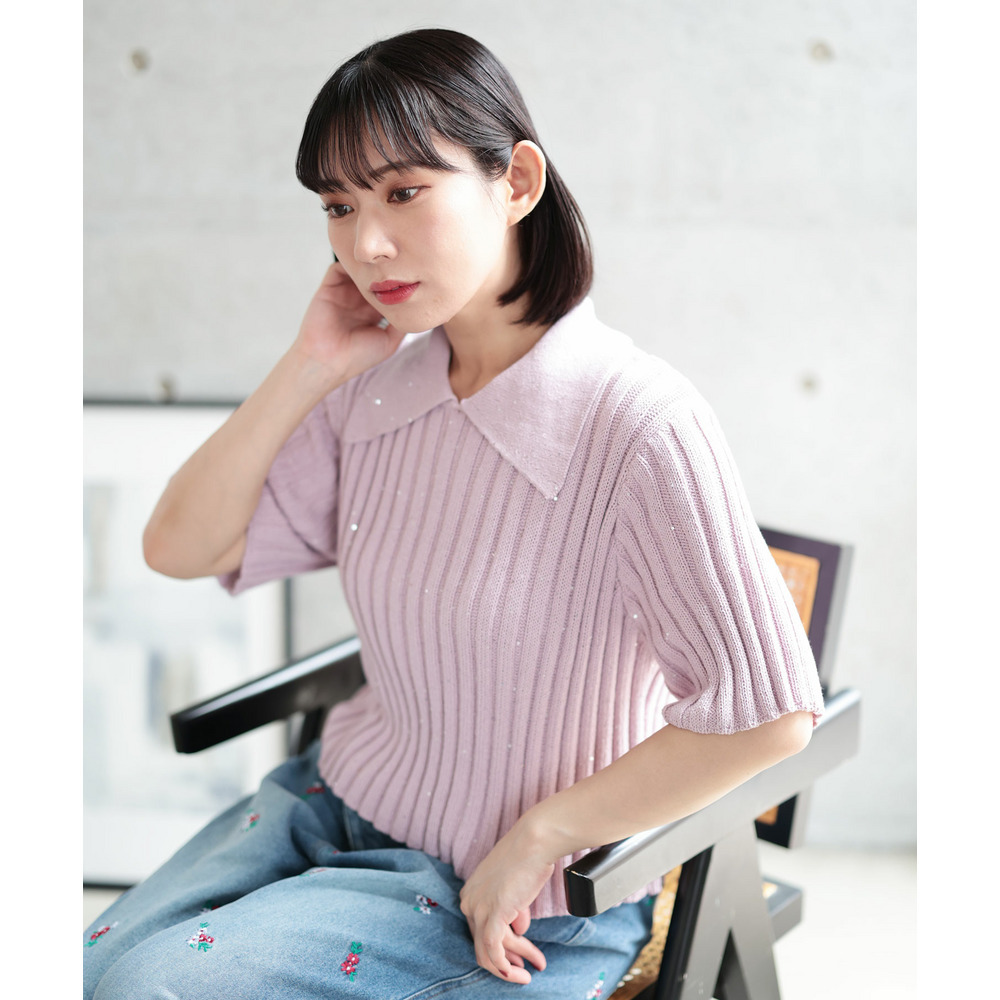• 大きいサイズ レディース スパンコール衿付きニット1