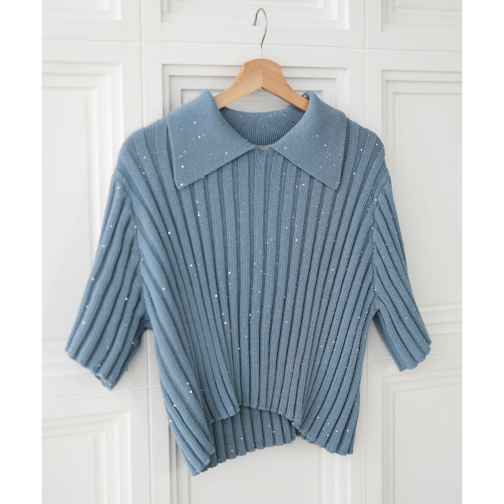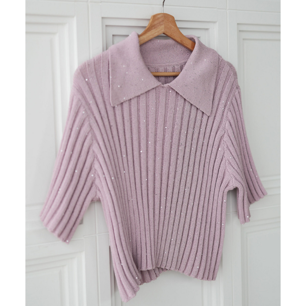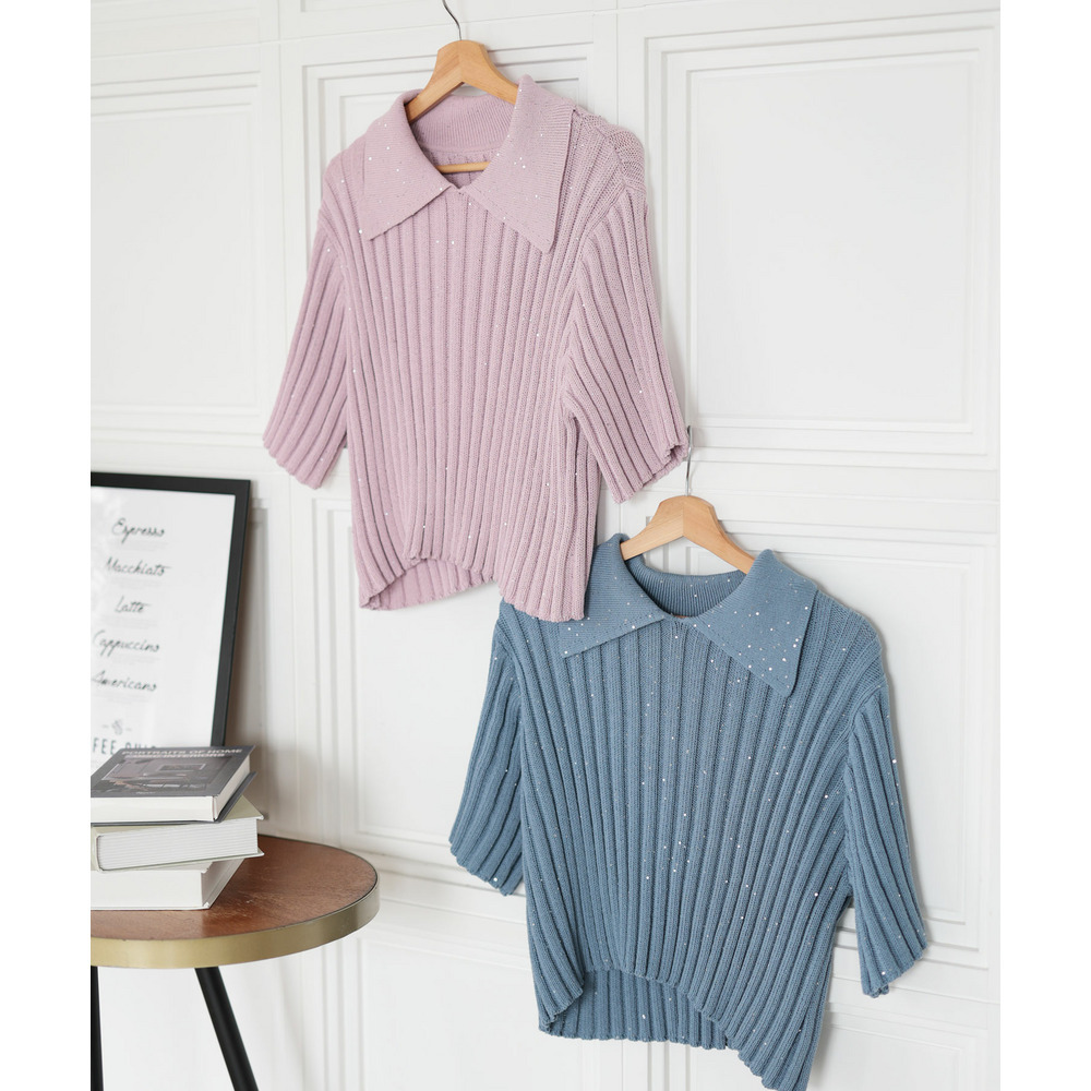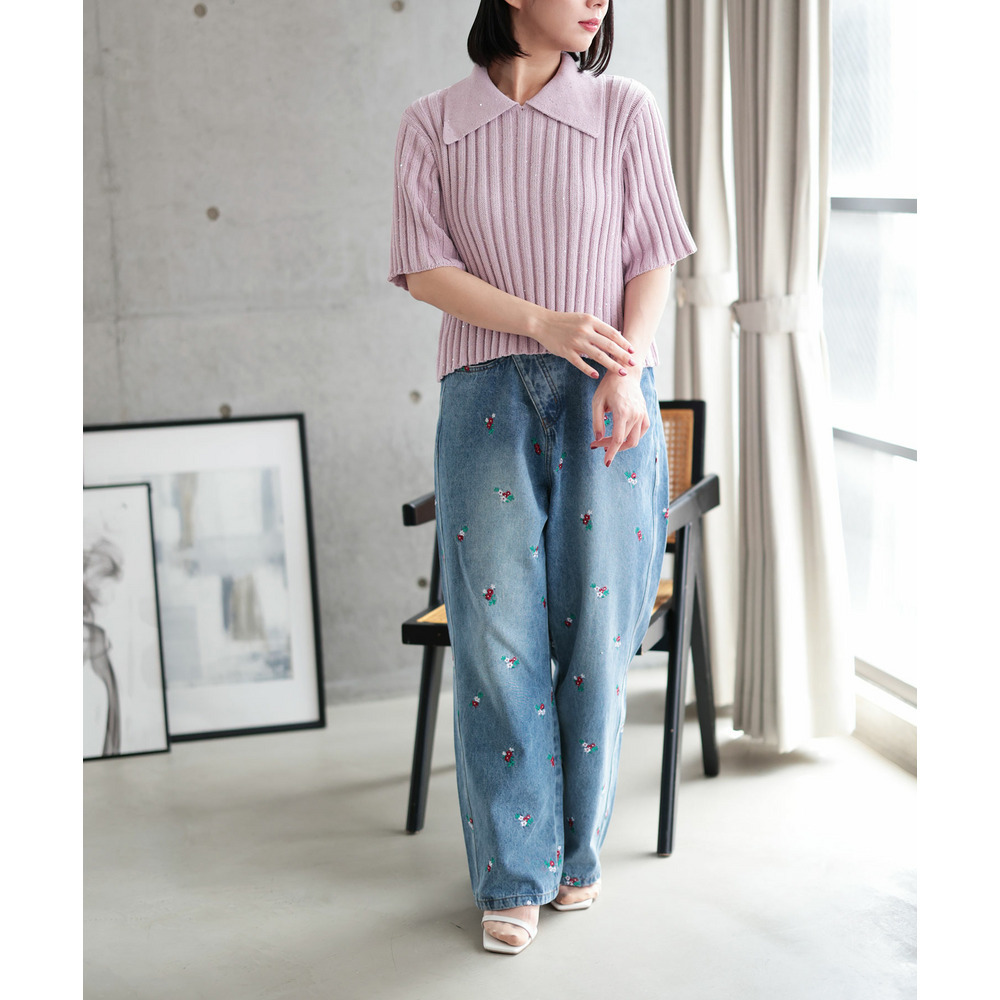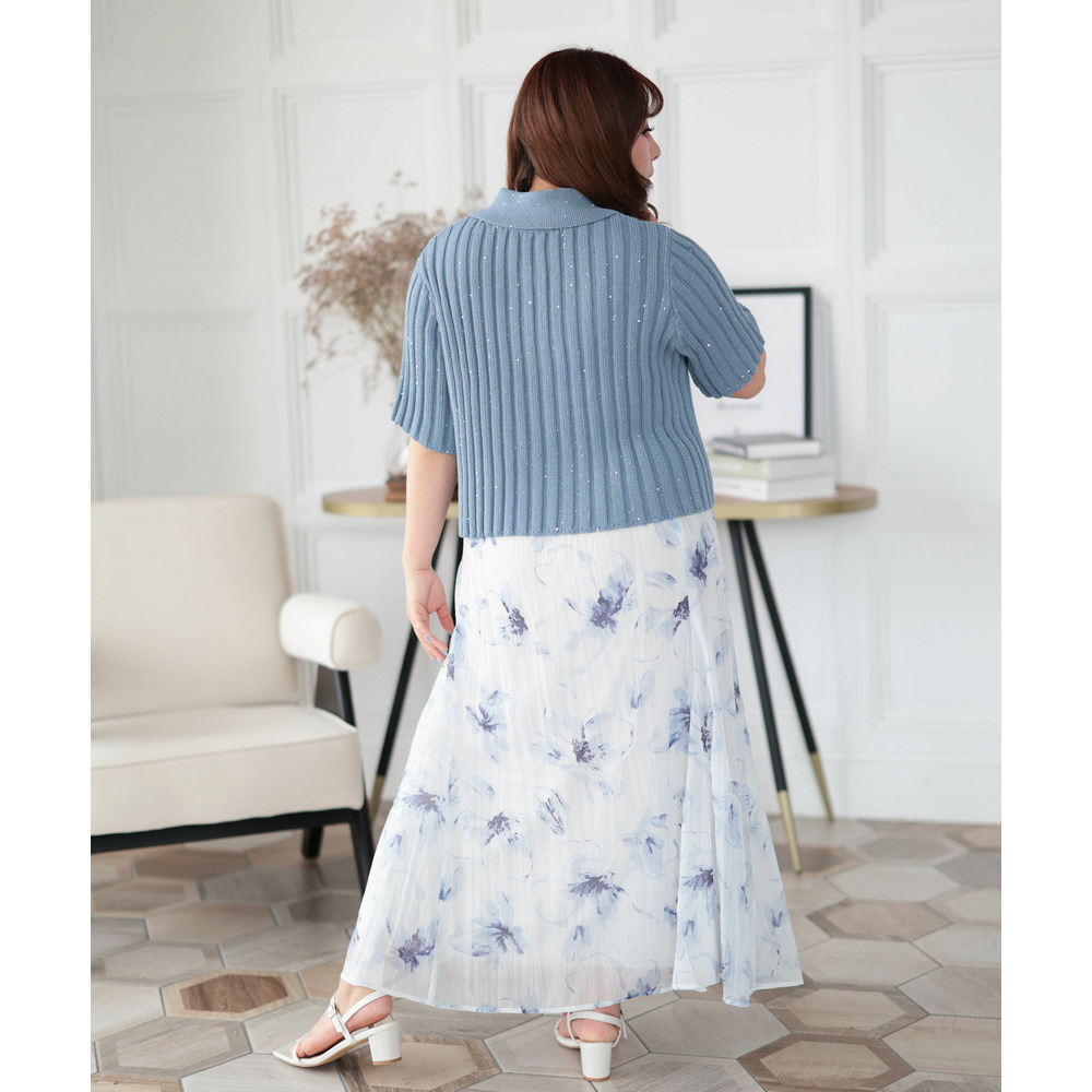 • 大きいサイズ レディース スパンコール衿付きニット1