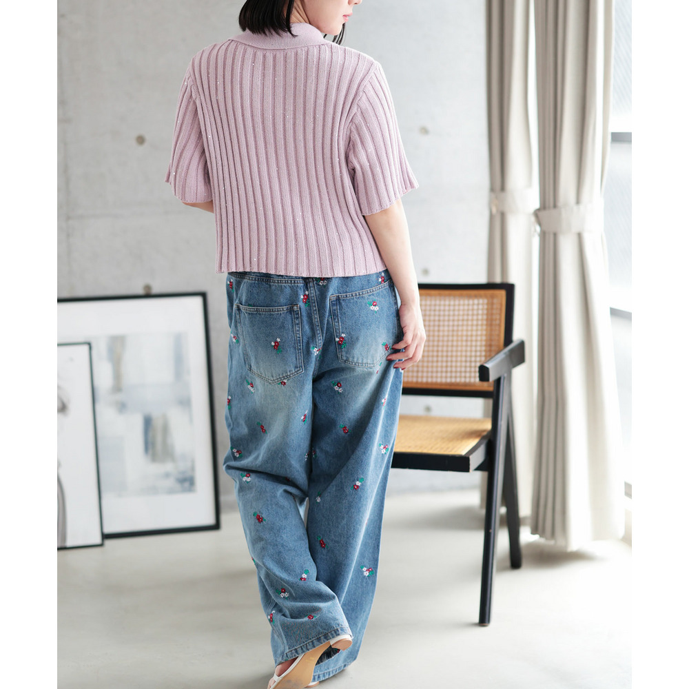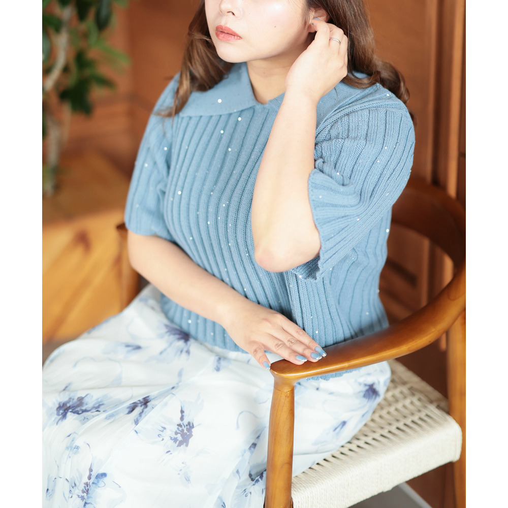 • 大きいサイズ レディース スパンコール衿付きニット7
