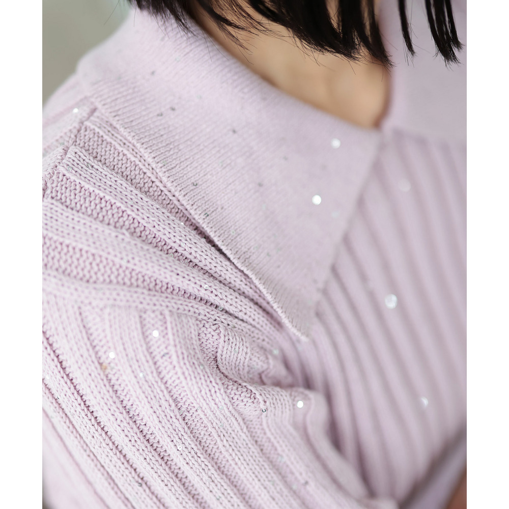 • 大きいサイズ レディース スパンコール衿付きニット8