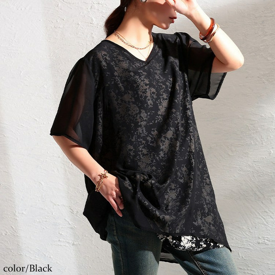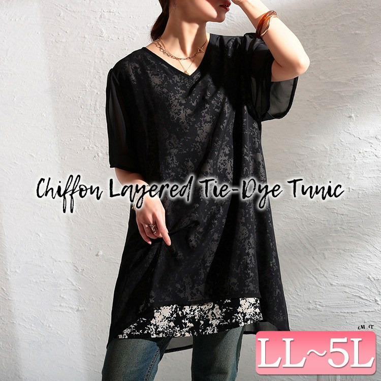 • 大きいサイズ レディース ニュアンス柄シフォンレイヤードチュニック1