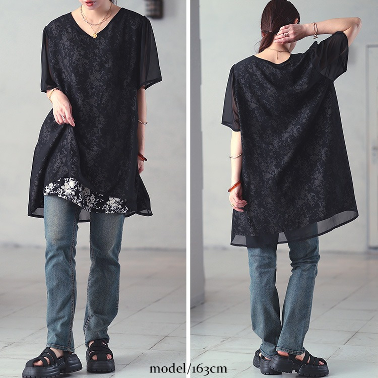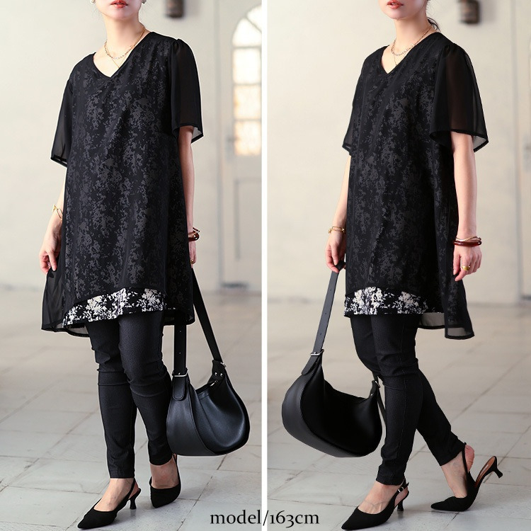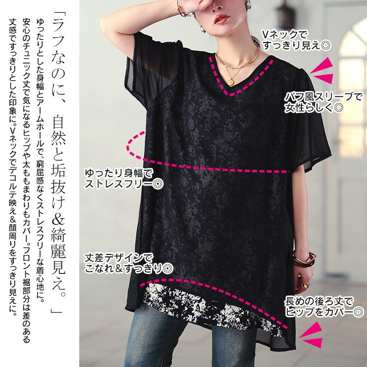 • 大きいサイズ レディース ニュアンス柄シフォンレイヤードチュニック6