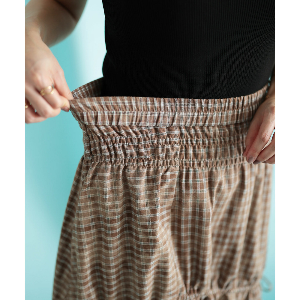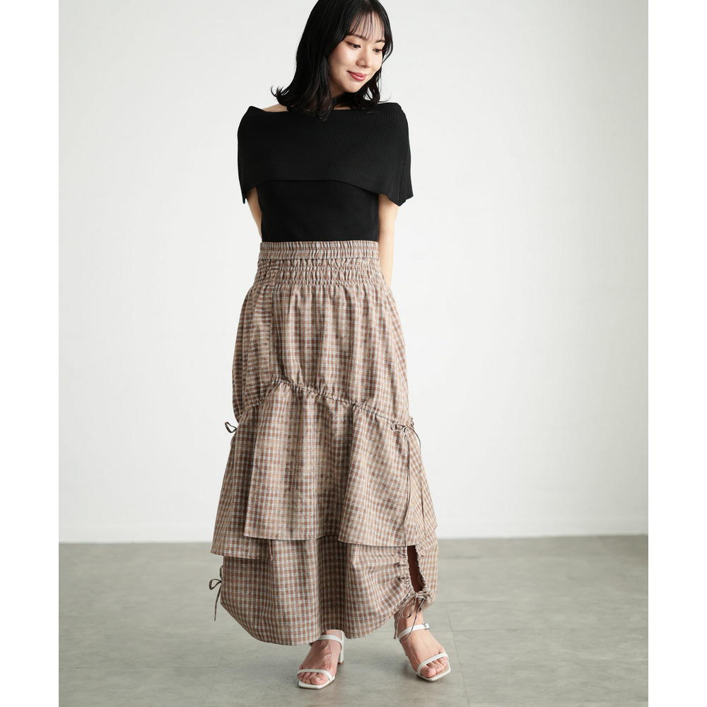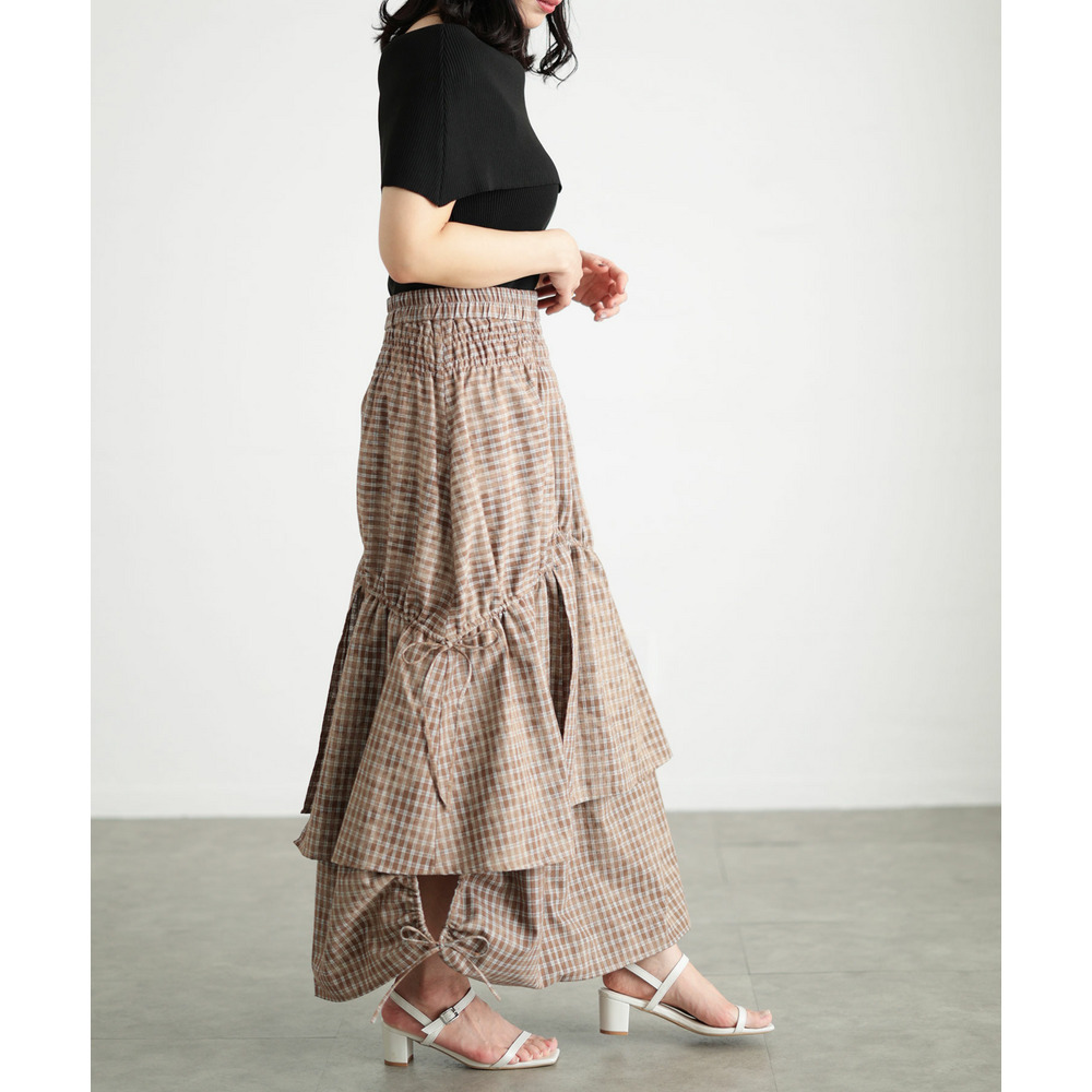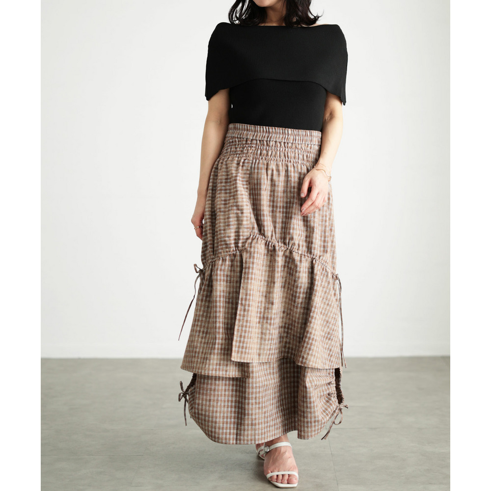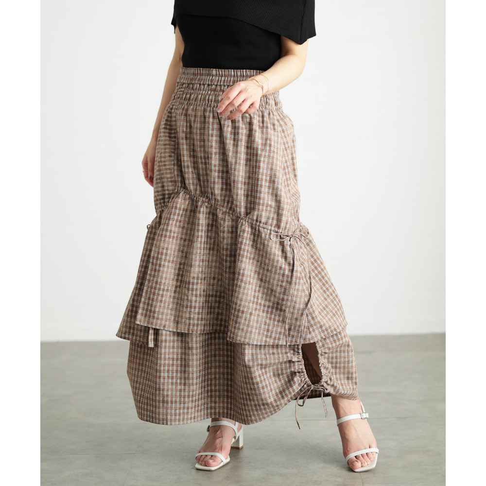 ドロストチェックティアードロングスカート 大きいサイズ レディース