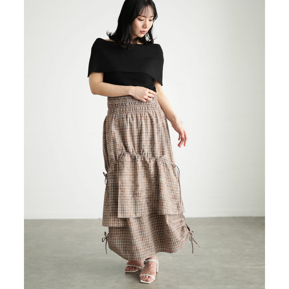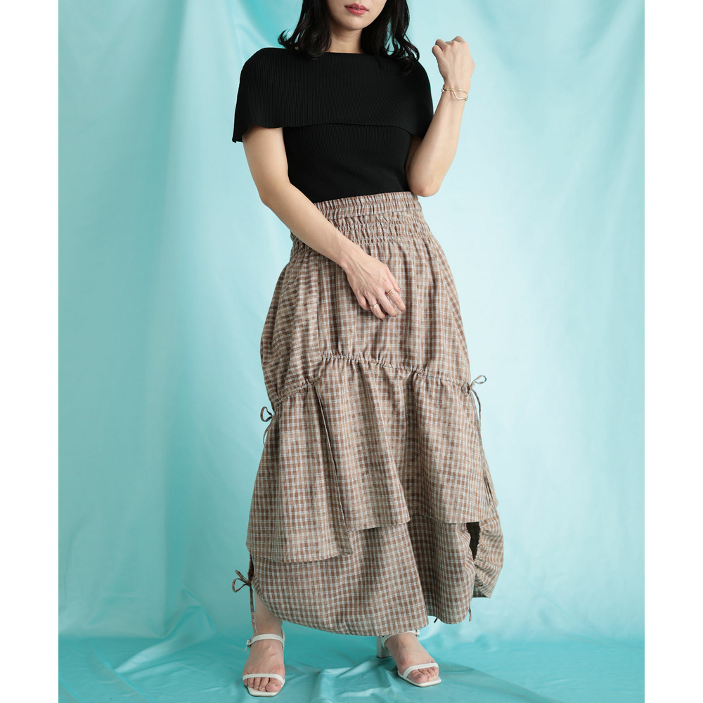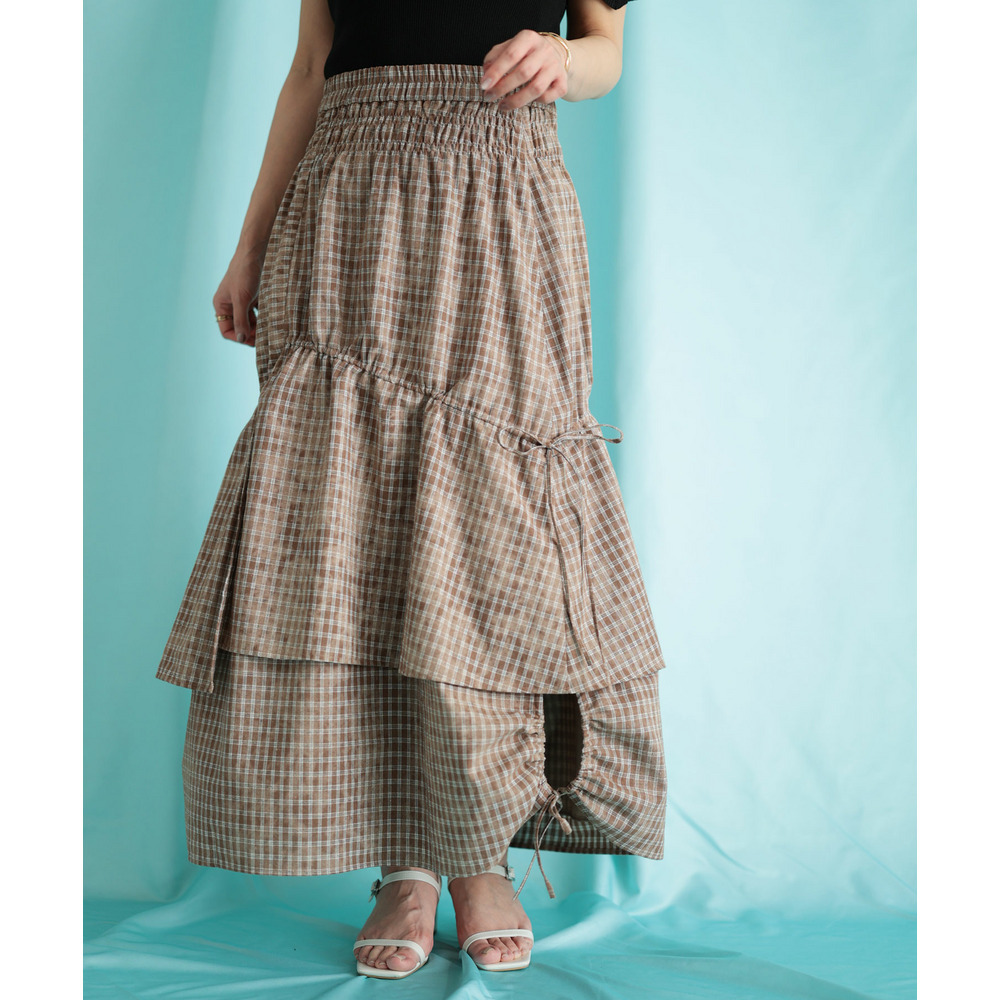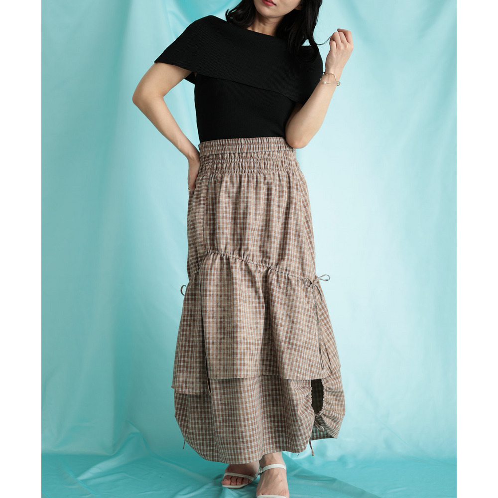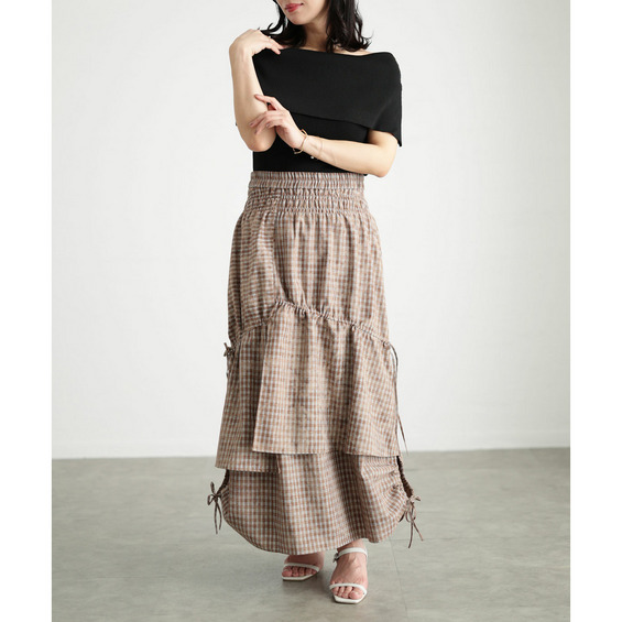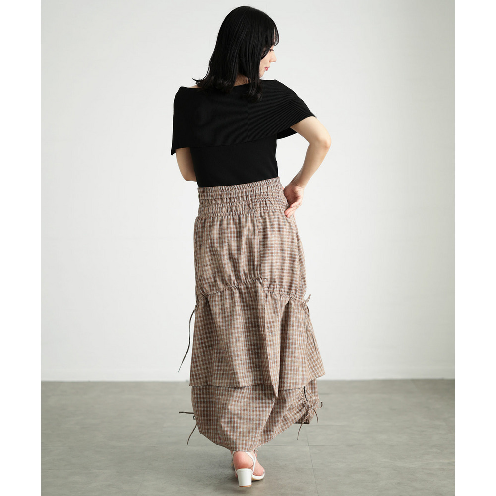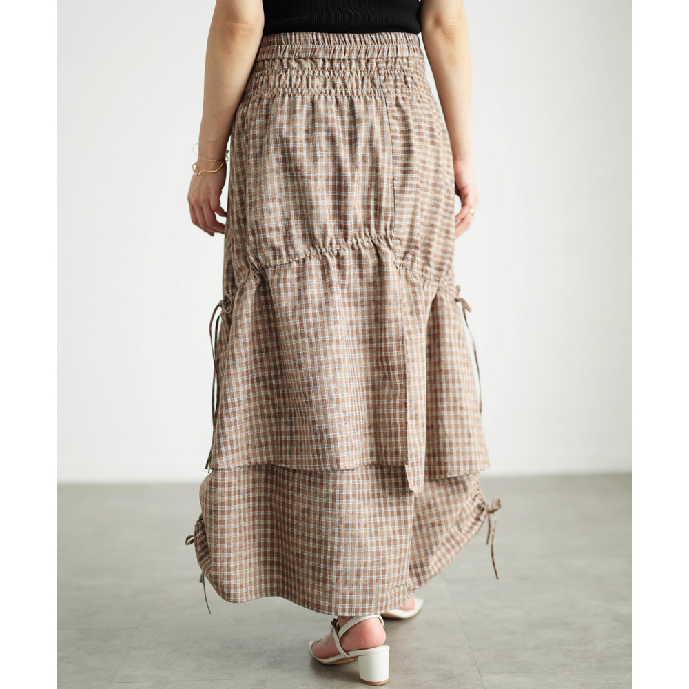 ドロストチェックティアードロングスカート 大きいサイズ レディース