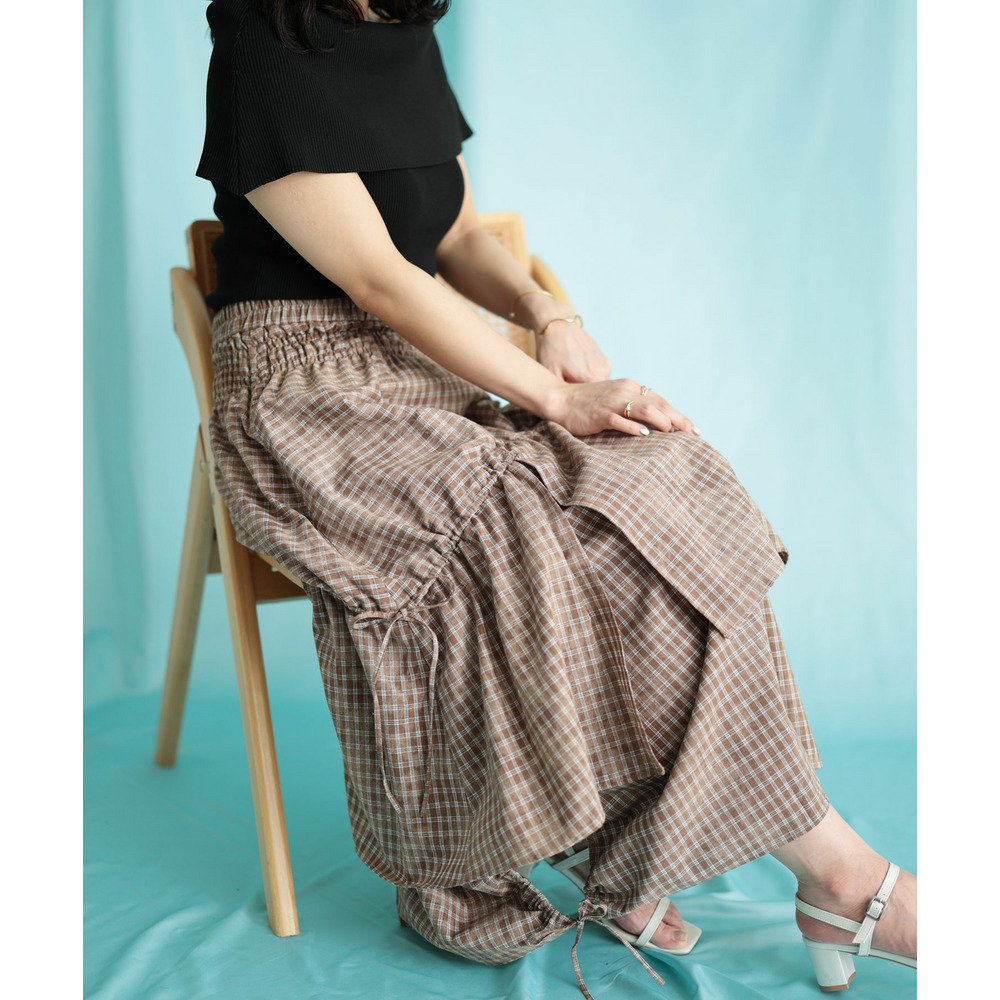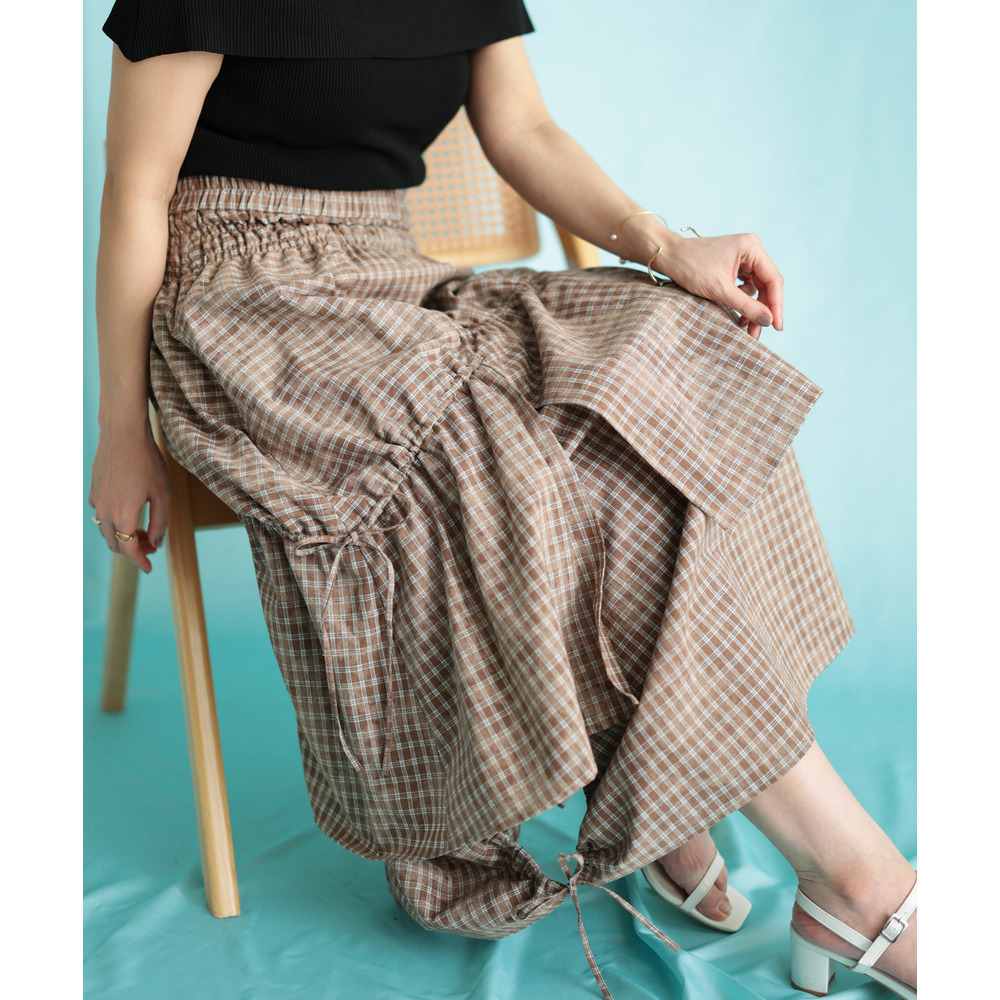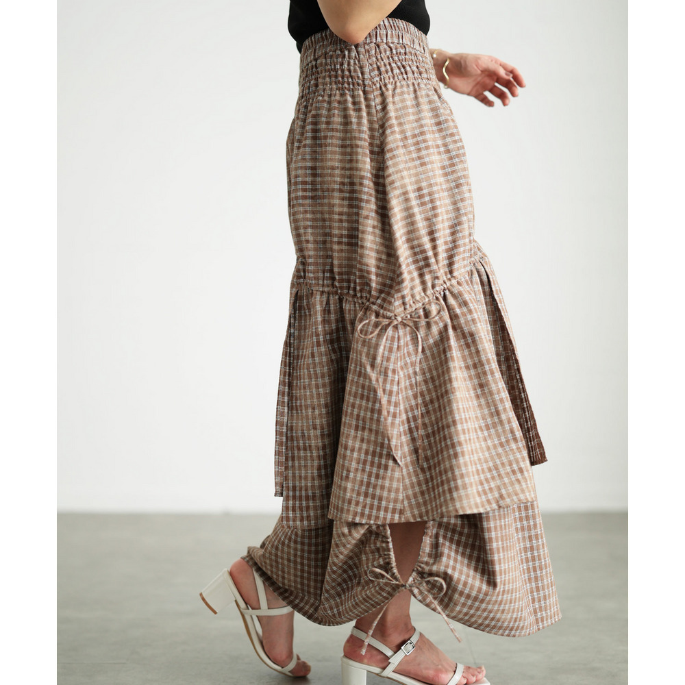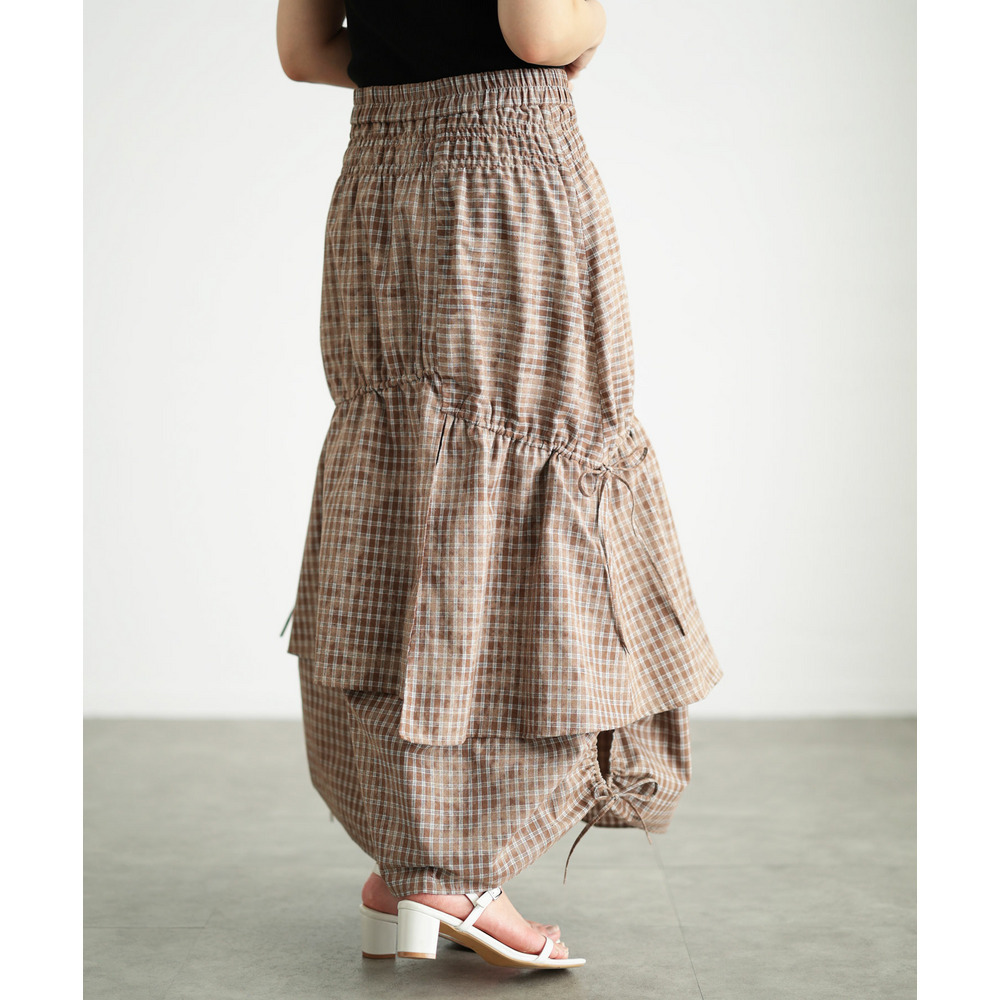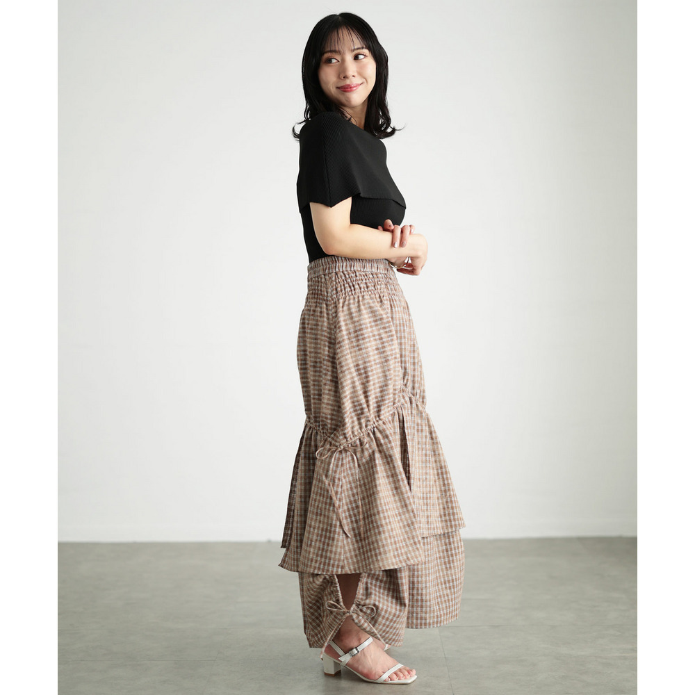 ドロストチェックティアードロングスカート 大きいサイズ レディース