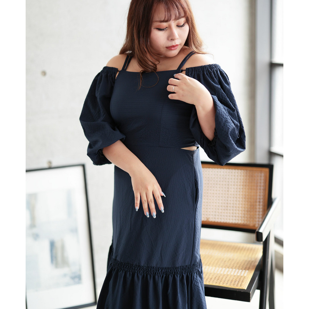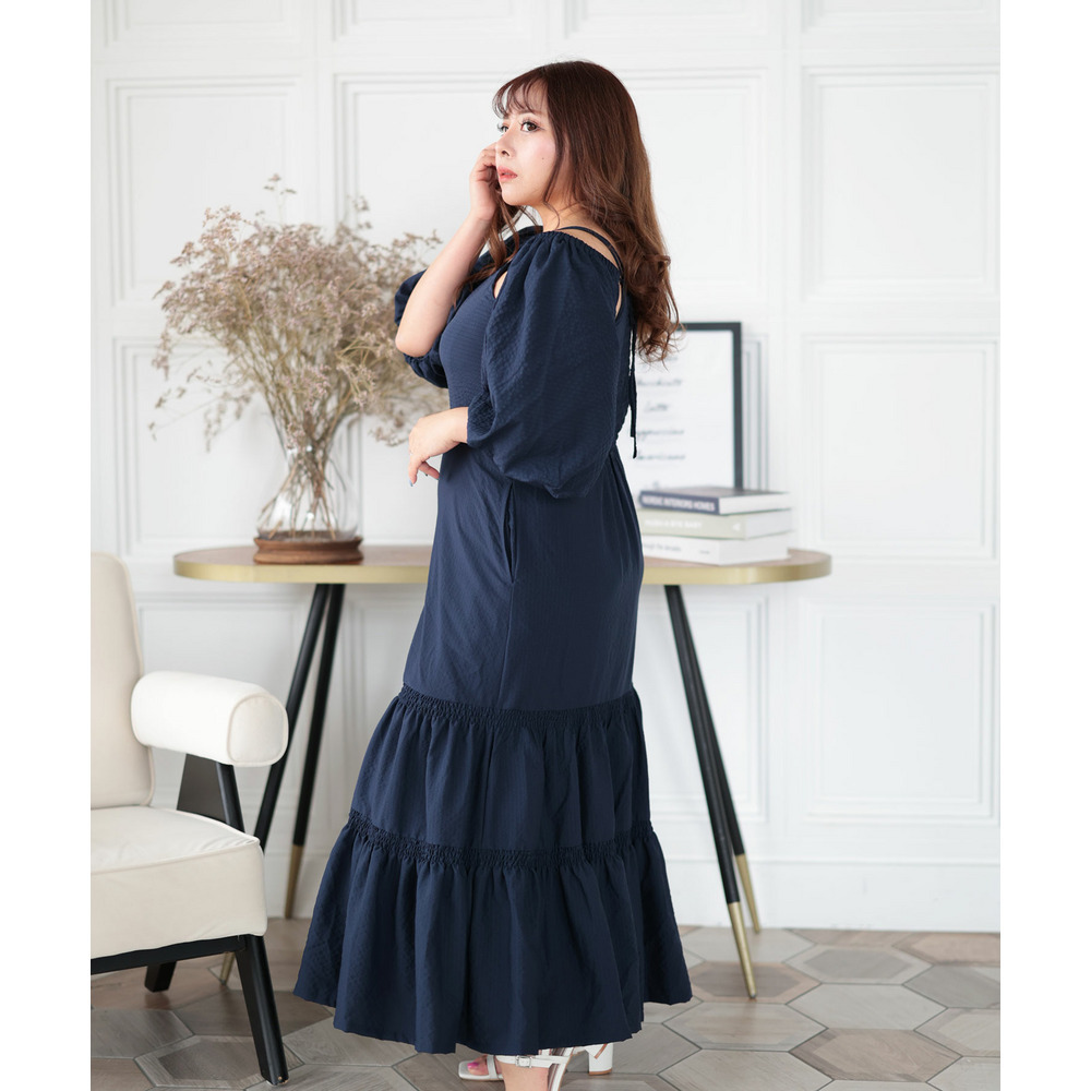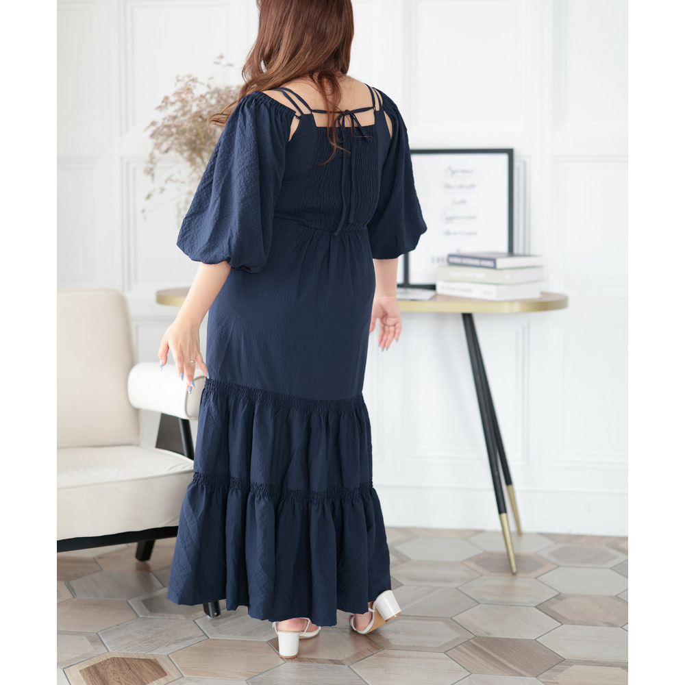 3WAYギャザースリーブティアードワンピース 大きいサイズ レディース