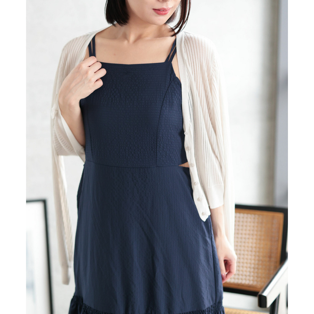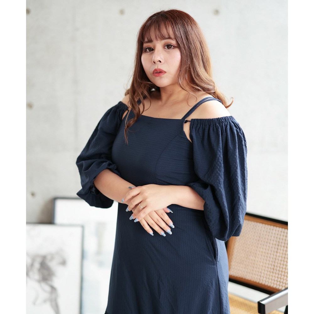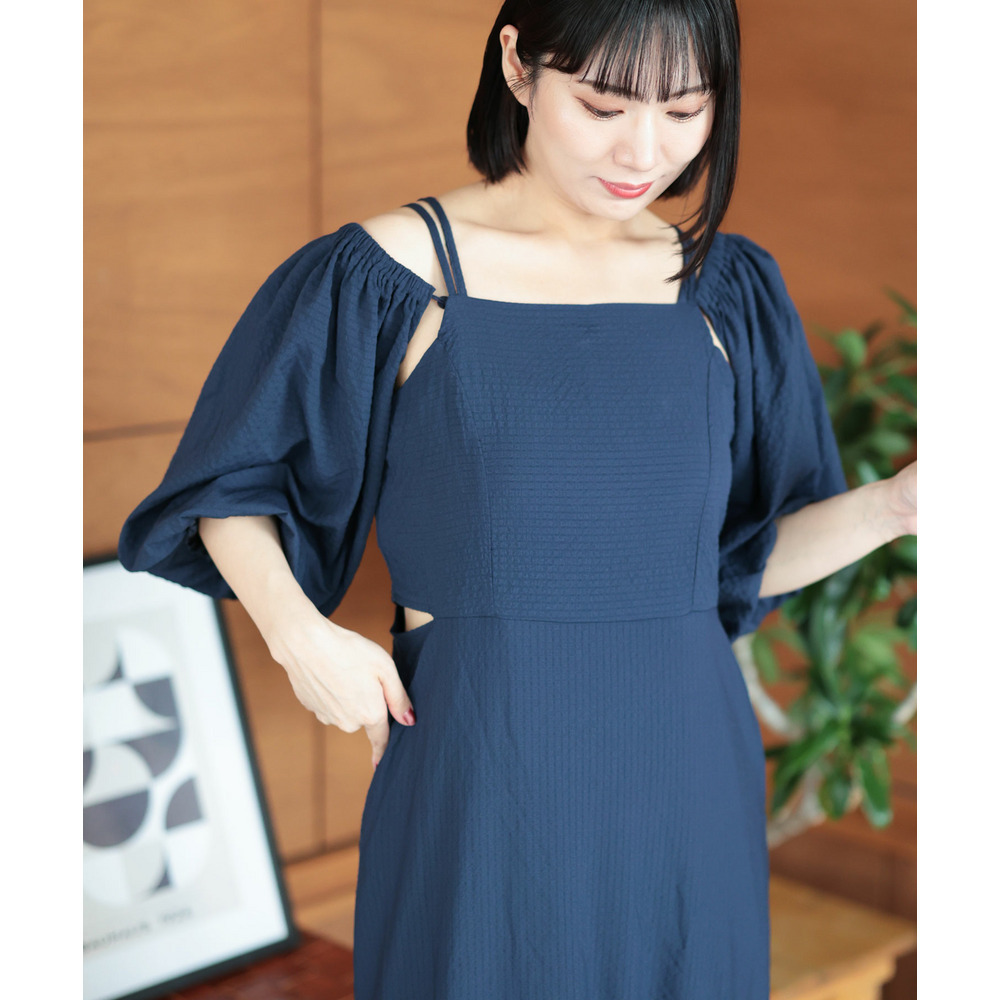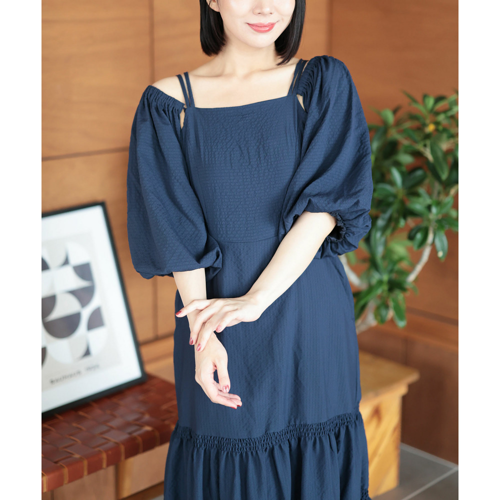 オフショル風、スクエアネックの上品見せの抜け感スタイルと、キャミワンピースの3WAYで楽しめる優秀デザインです。