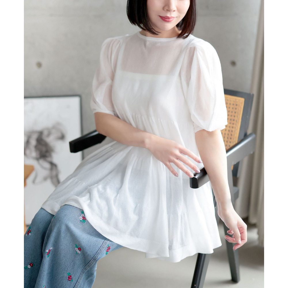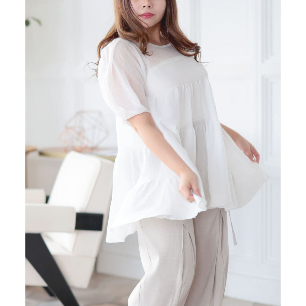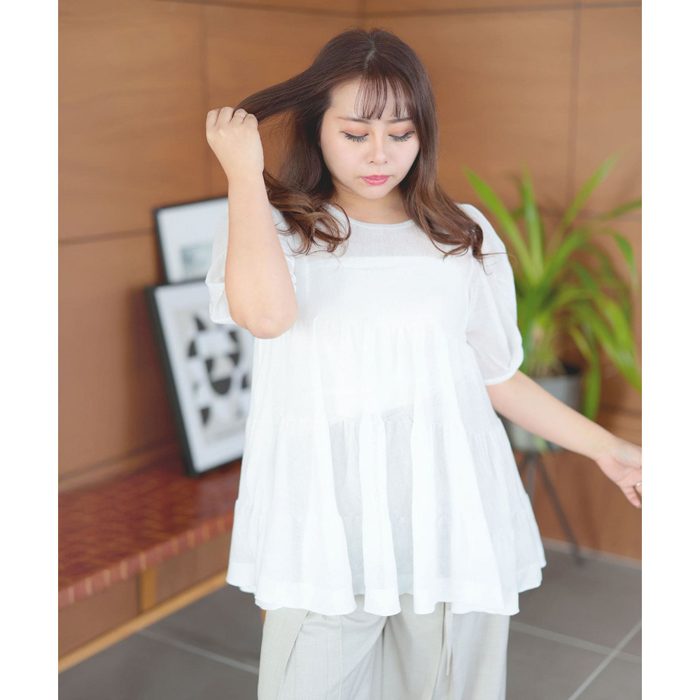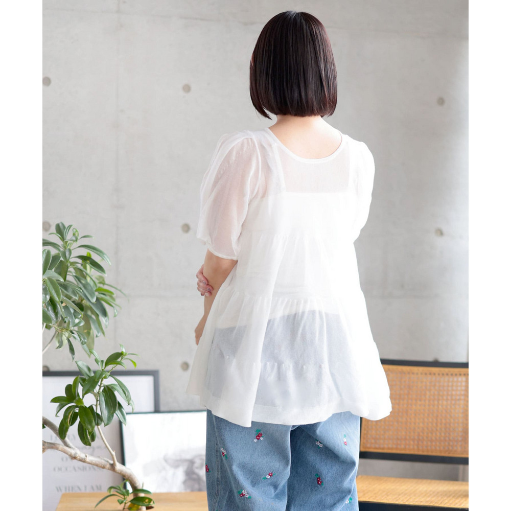 シアー半袖ティアードチュニック 大きいサイズ レディース