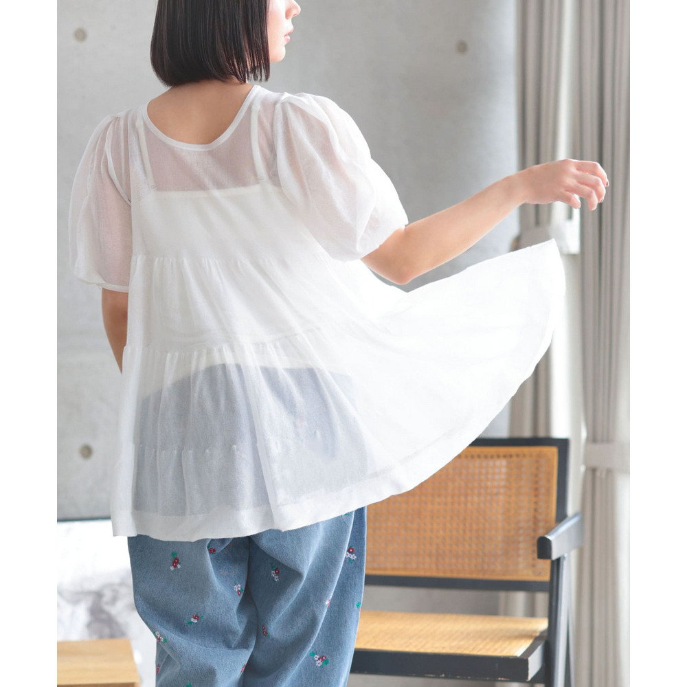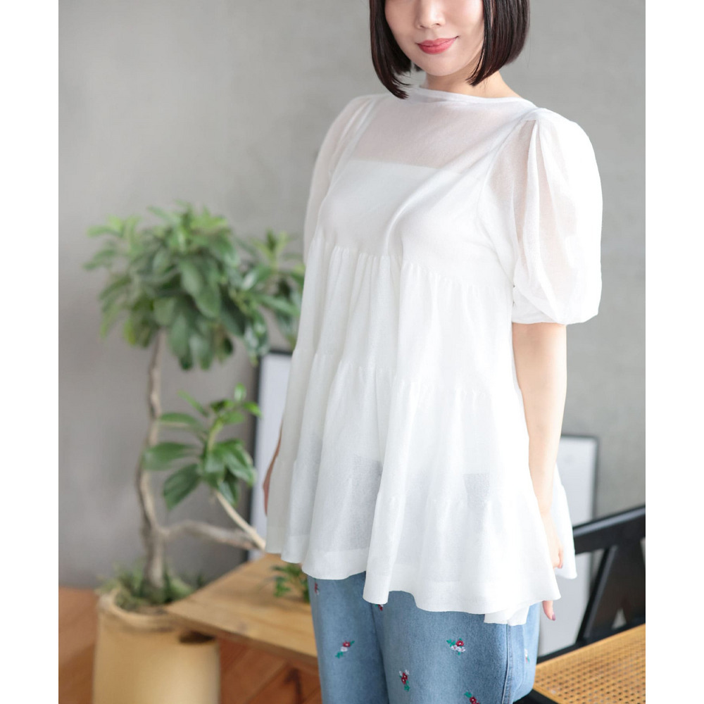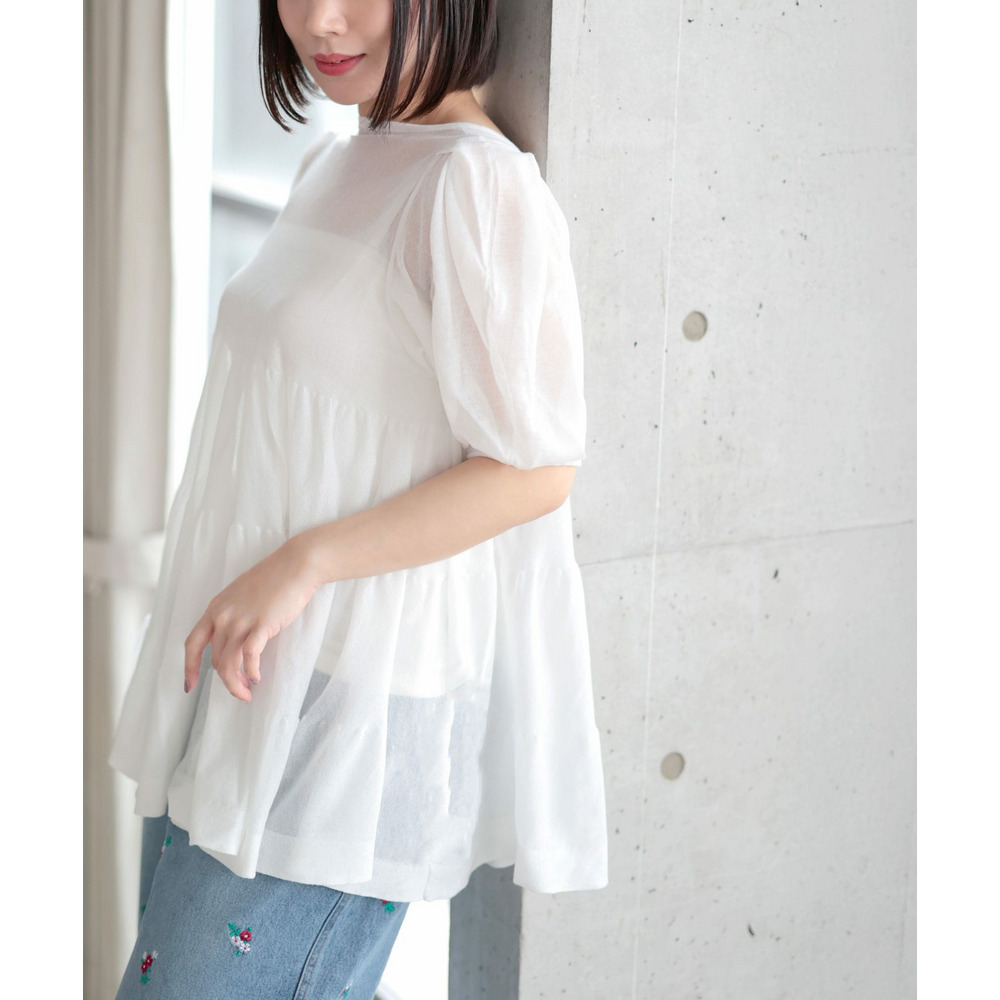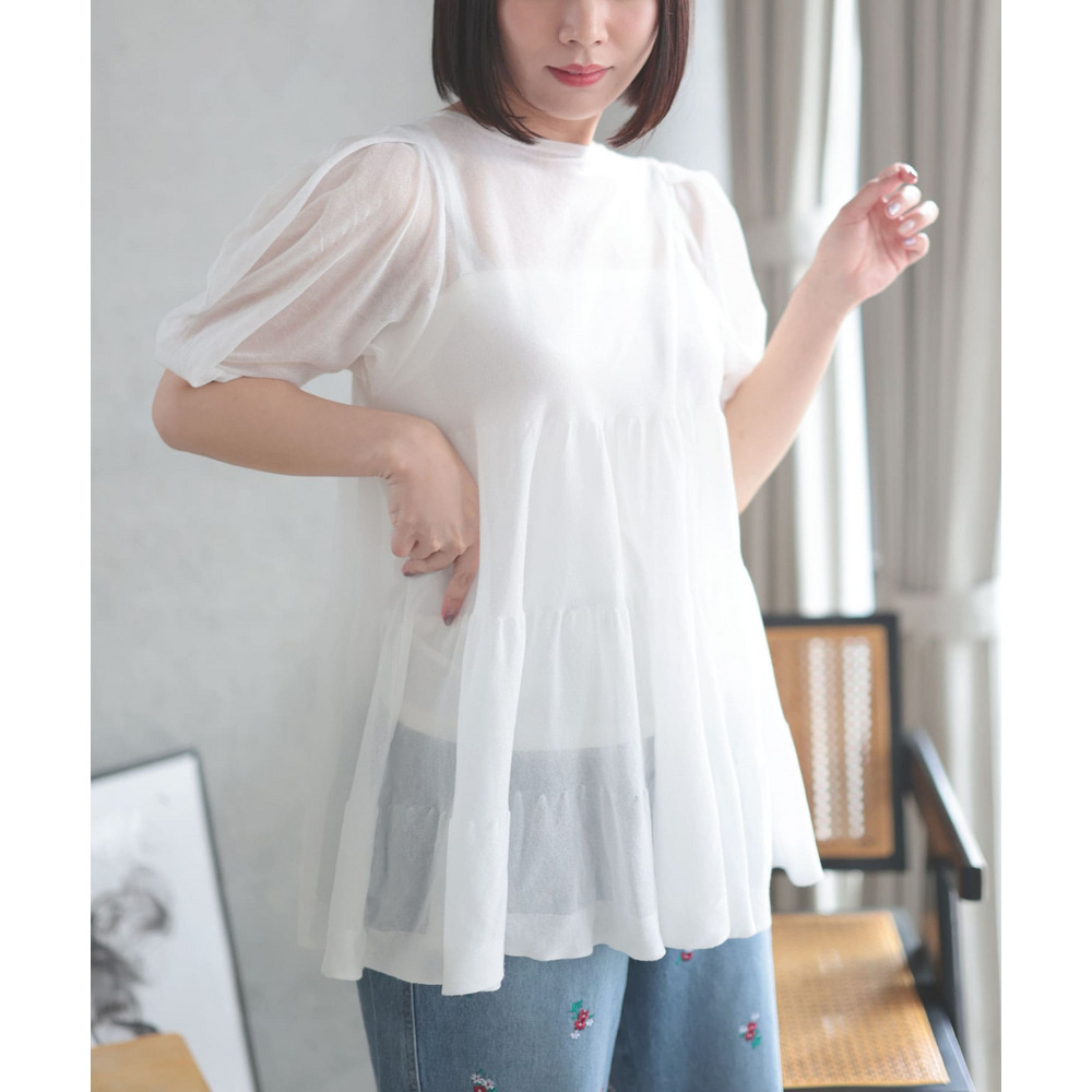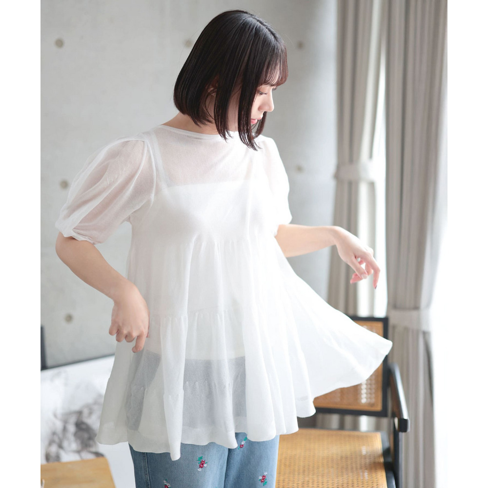 シアー半袖ティアードチュニック 大きいサイズ レディース