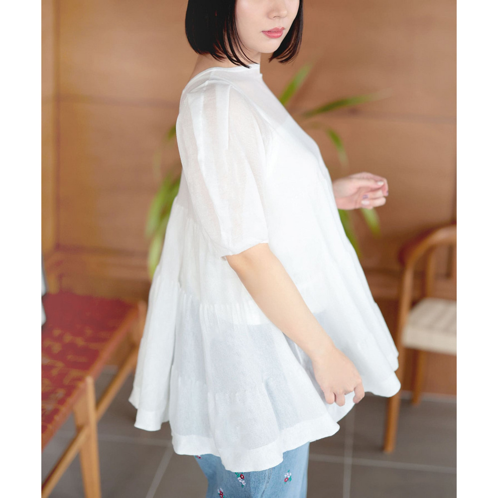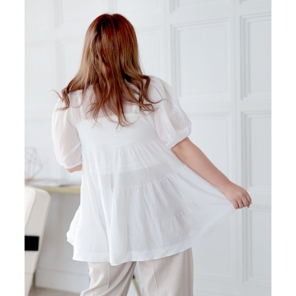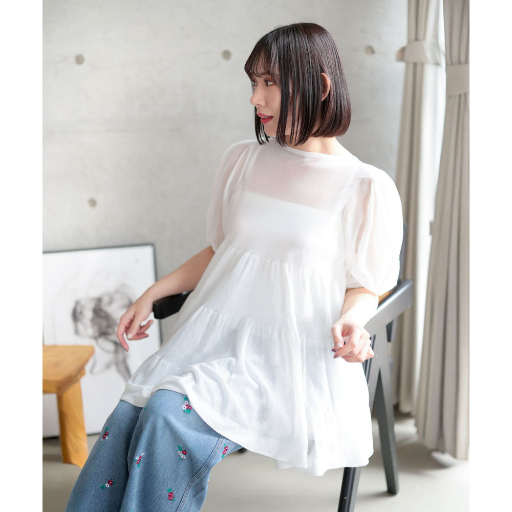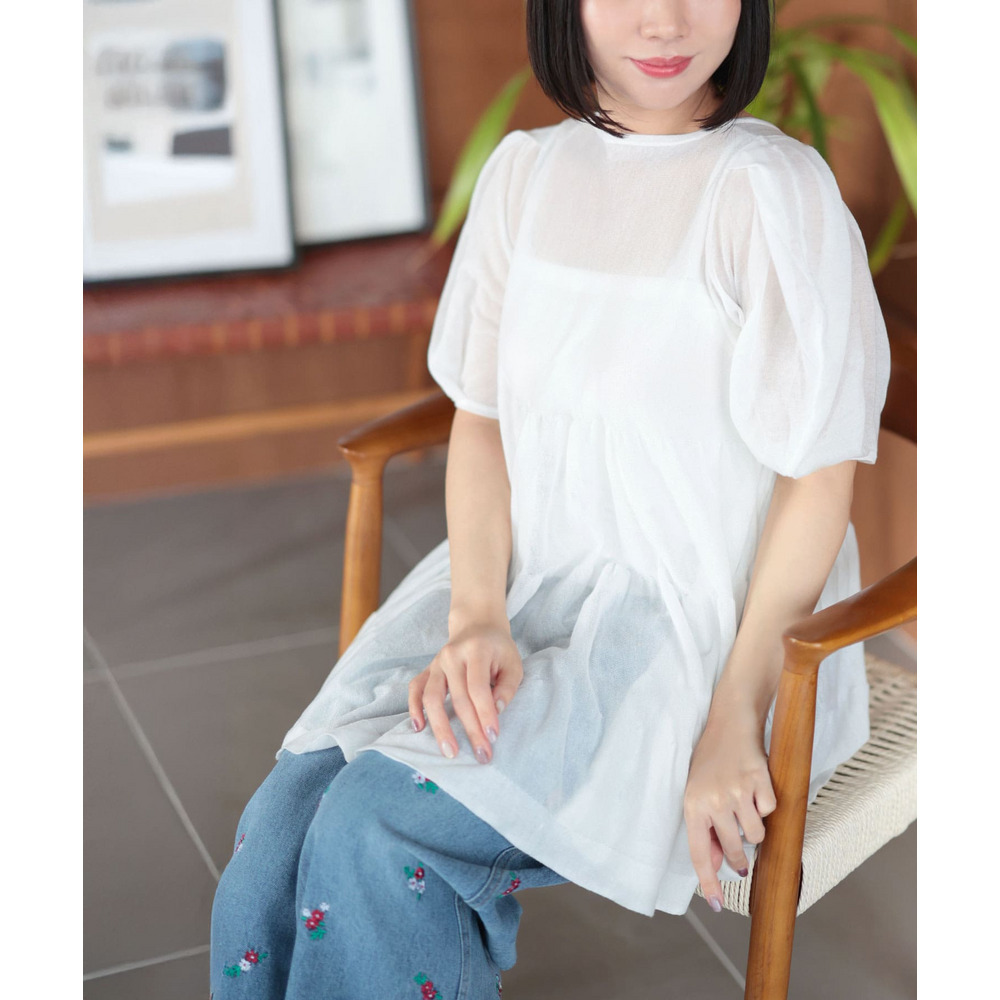 シアー半袖ティアードチュニック 大きいサイズ レディース