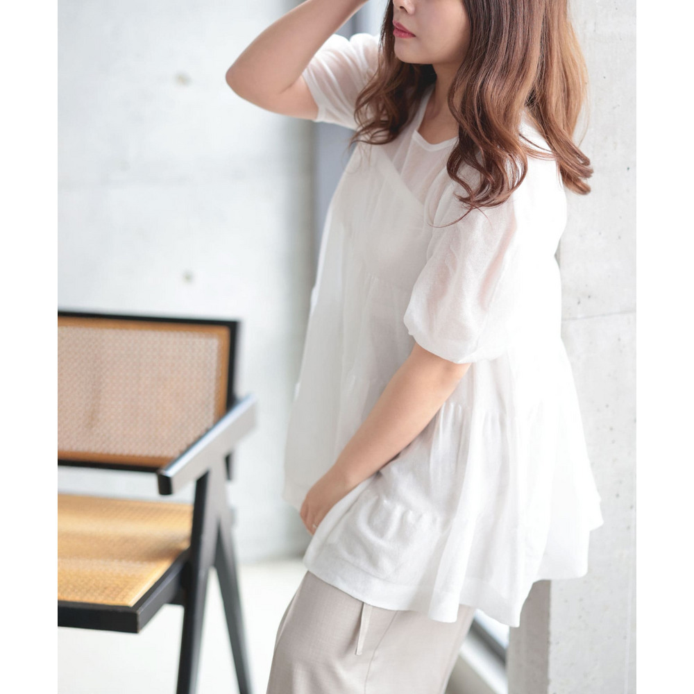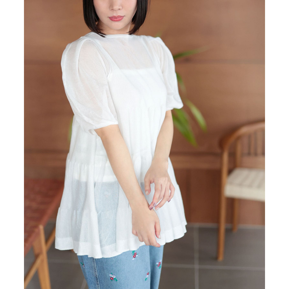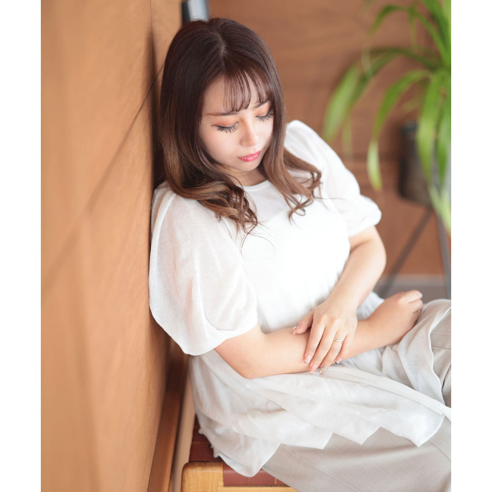 透け感のあるサマーニット素材がエアリーで涼しげな印象に。