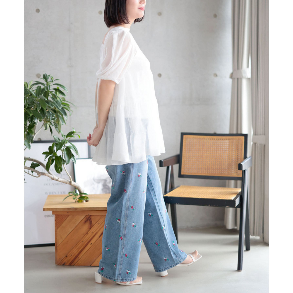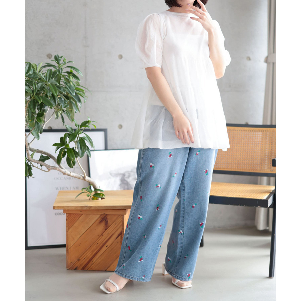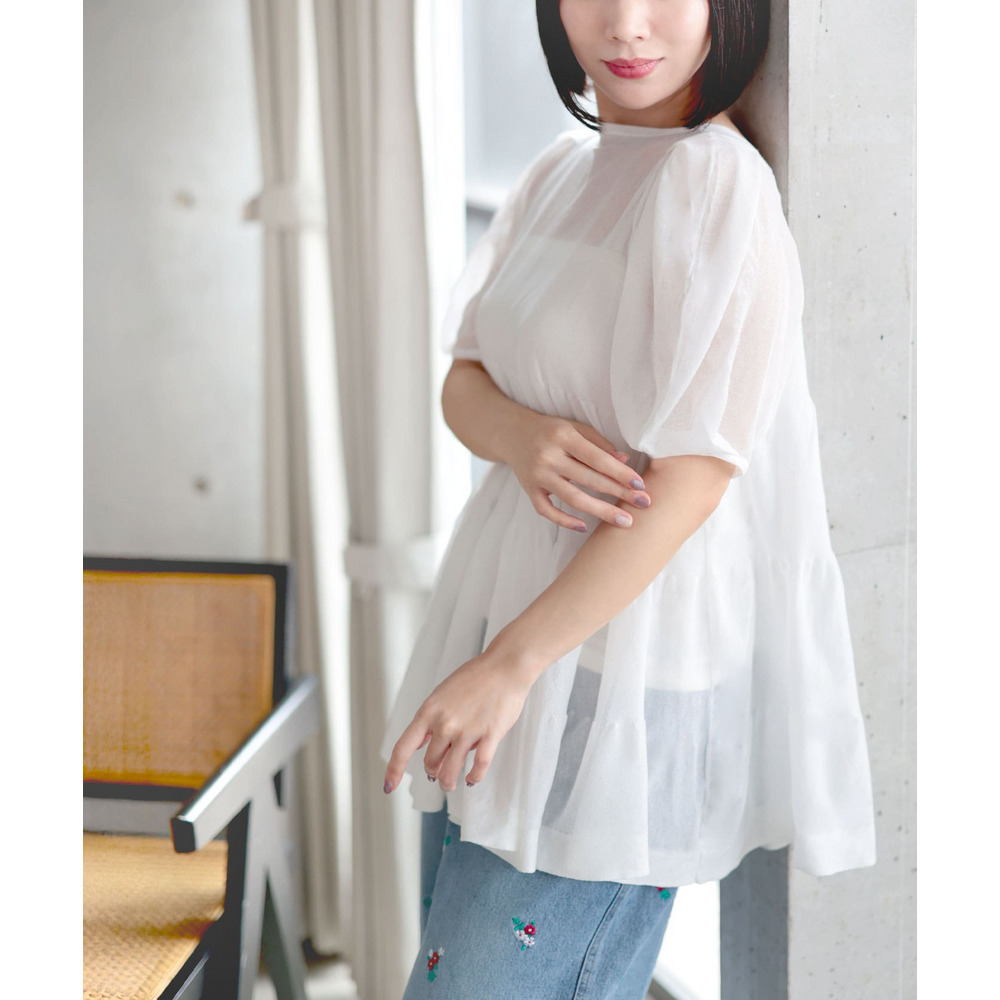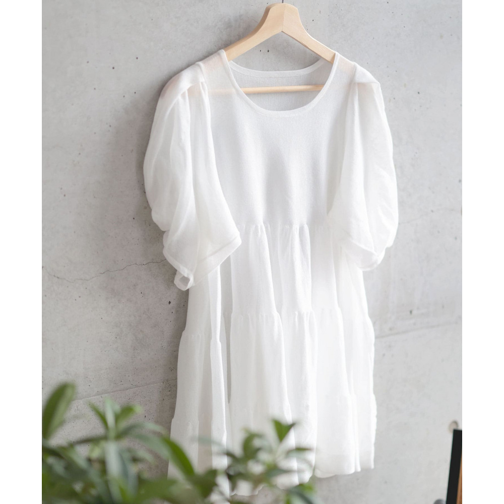 透け感のあるサマーニット素材がエアリーで涼しげな印象に。
