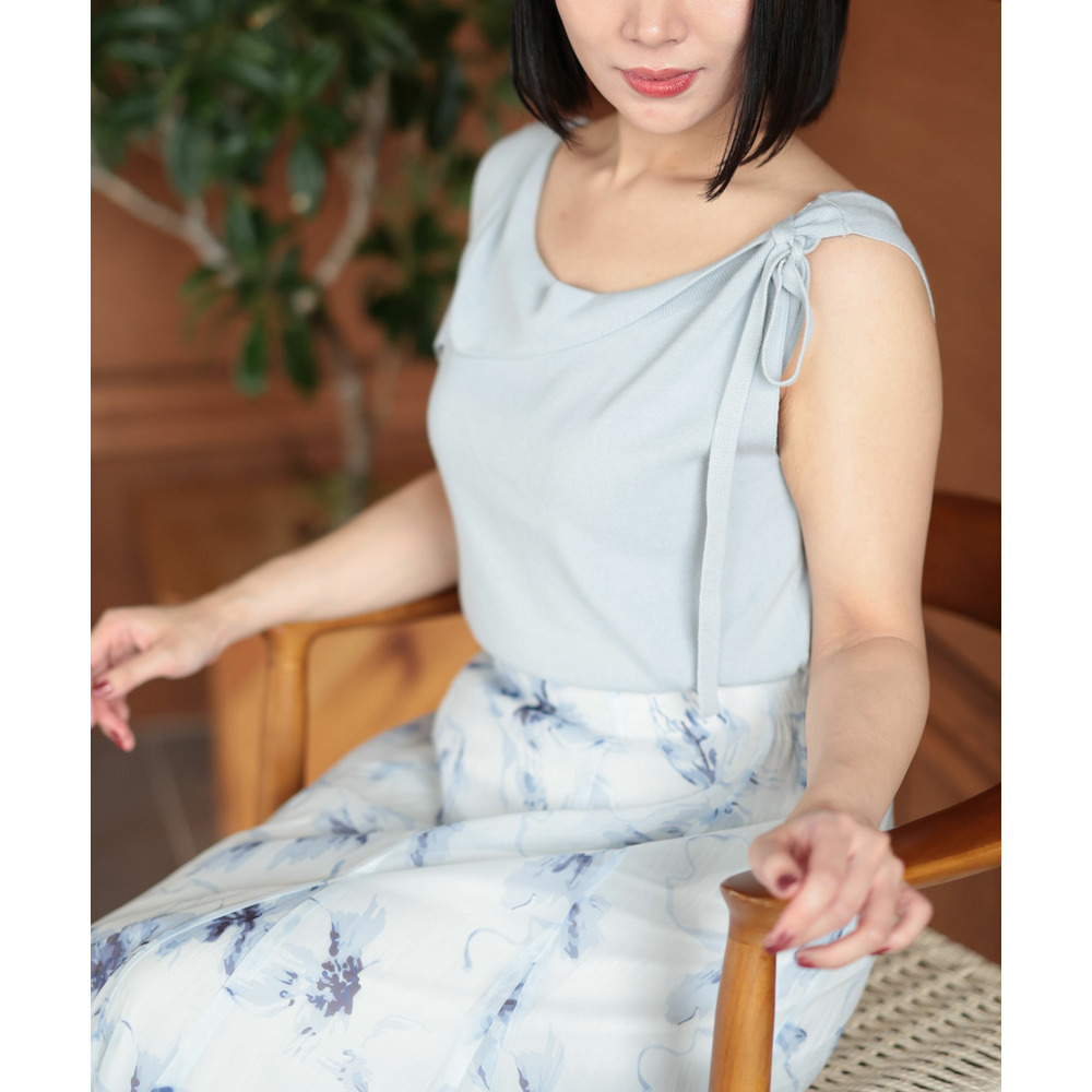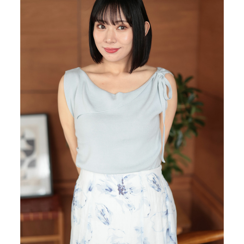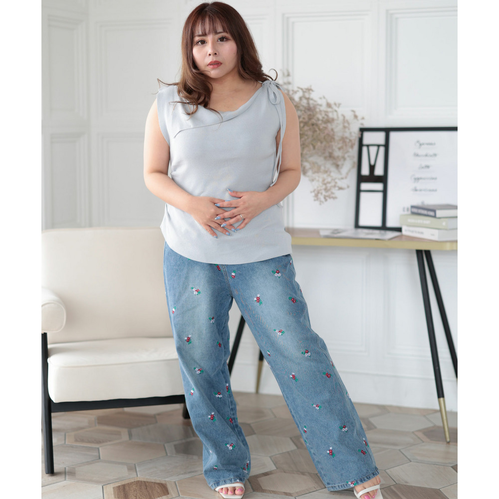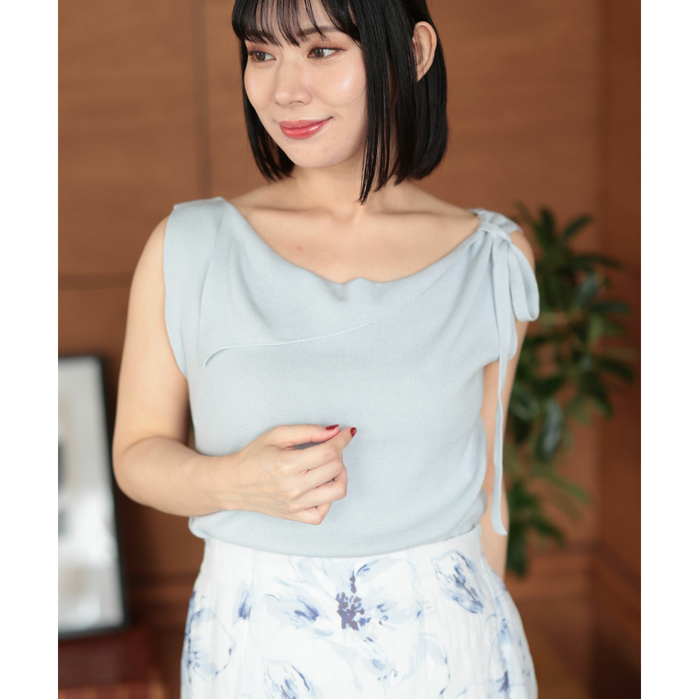 肩リボンアシンメトリーニットトップス 大きいサイズ レディース