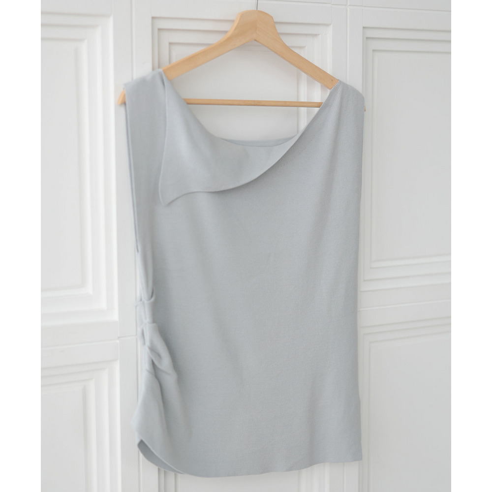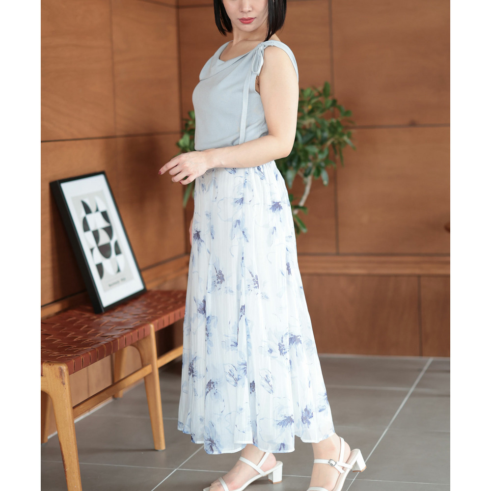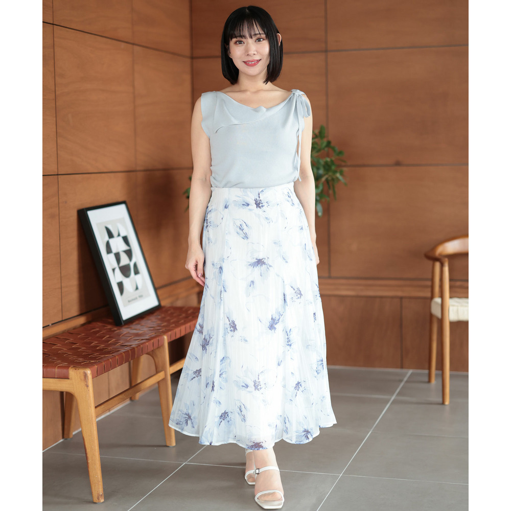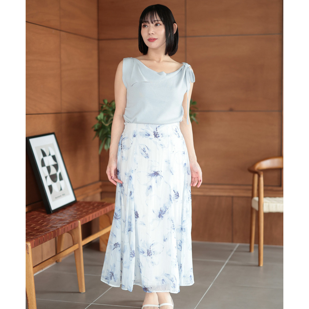 ウエストは片側だけにふんわりとドレープが入った立体デザイン。
