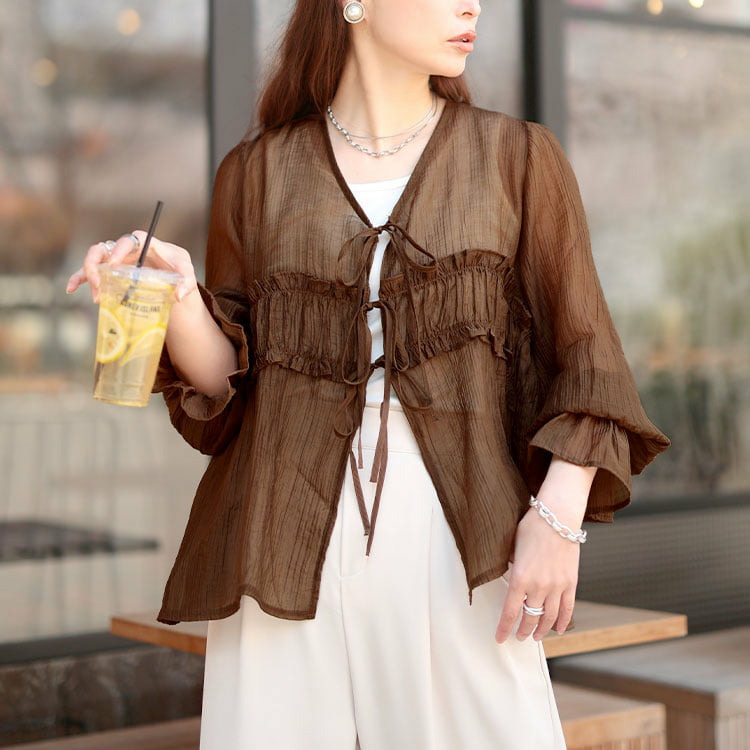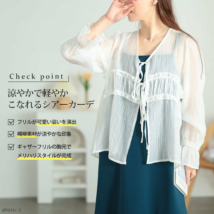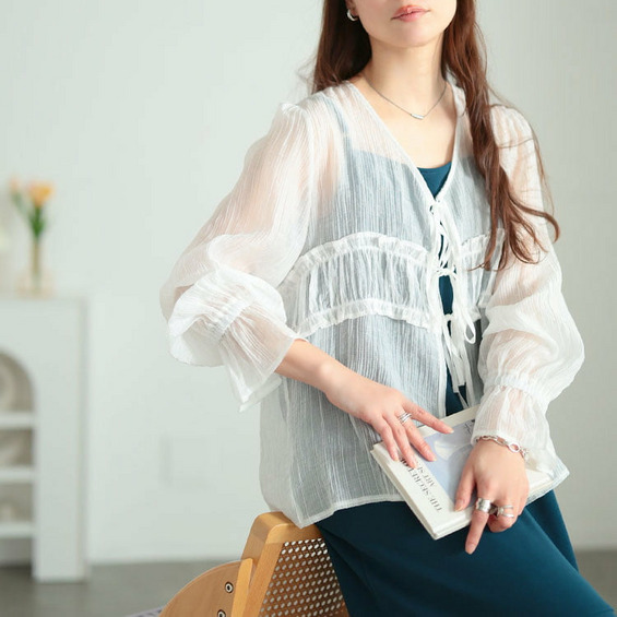 軽やかで爽やかな透け感が魅力のシアーカーディガン。