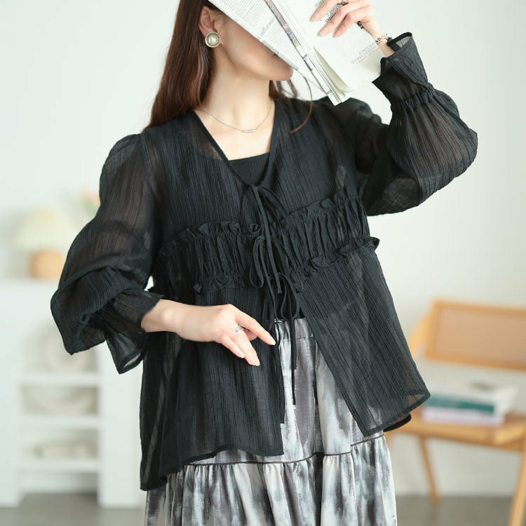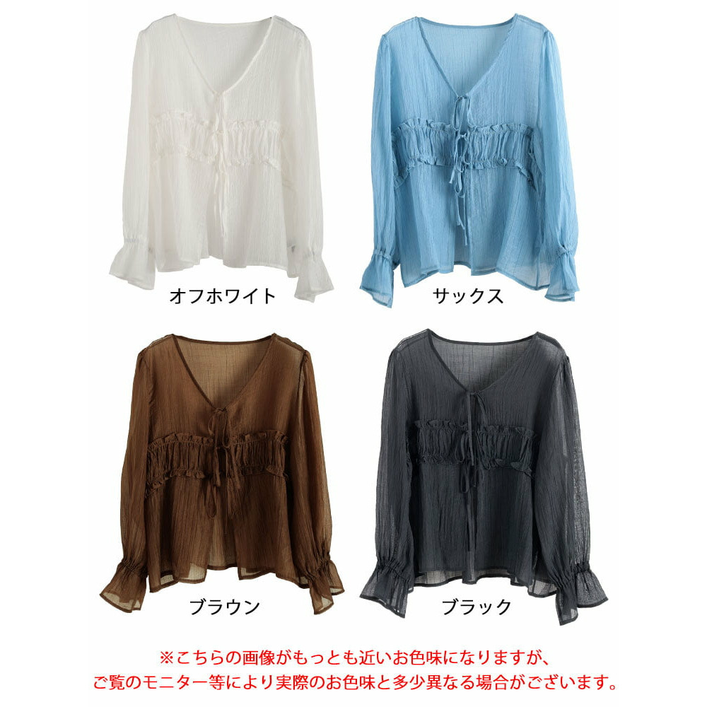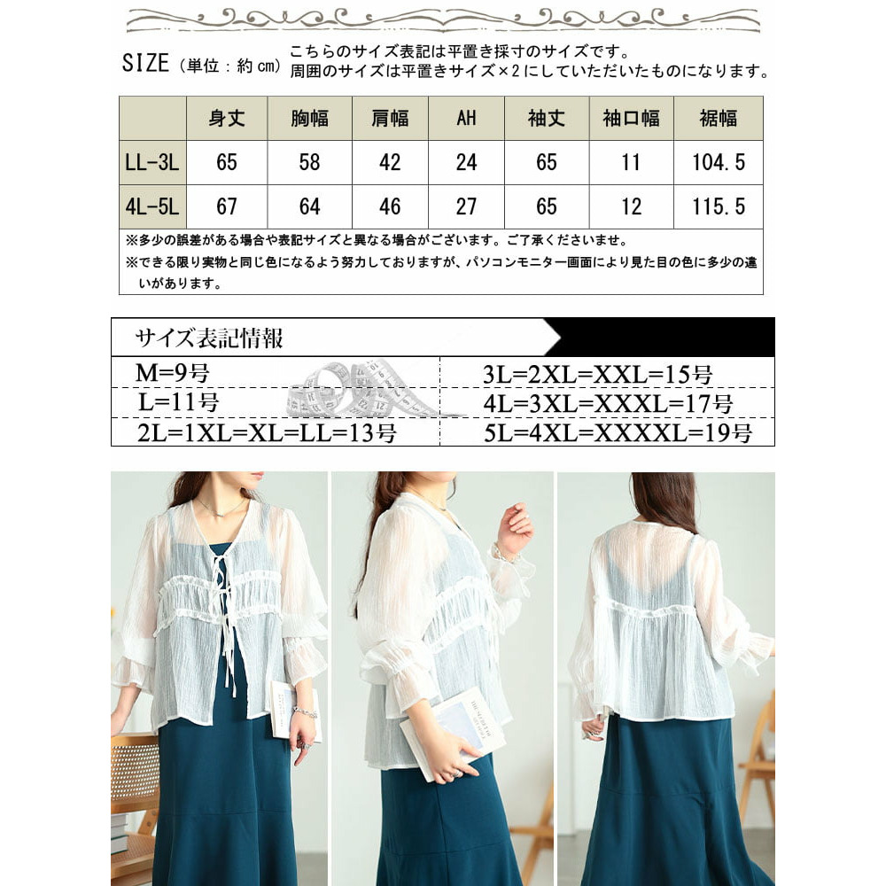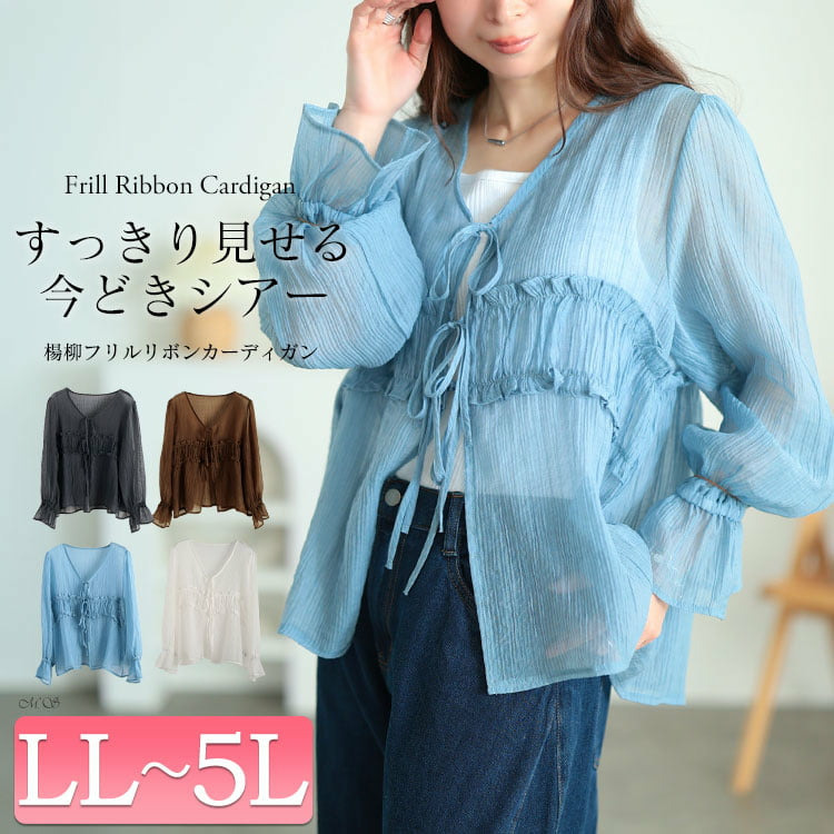 • 楊柳フリルシャツリボンカーディガン 大きいサイズ レディース18