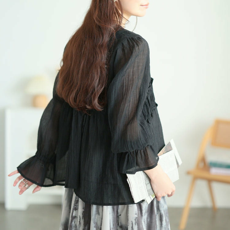 • 楊柳フリルシャツリボンカーディガン 大きいサイズ レディース19