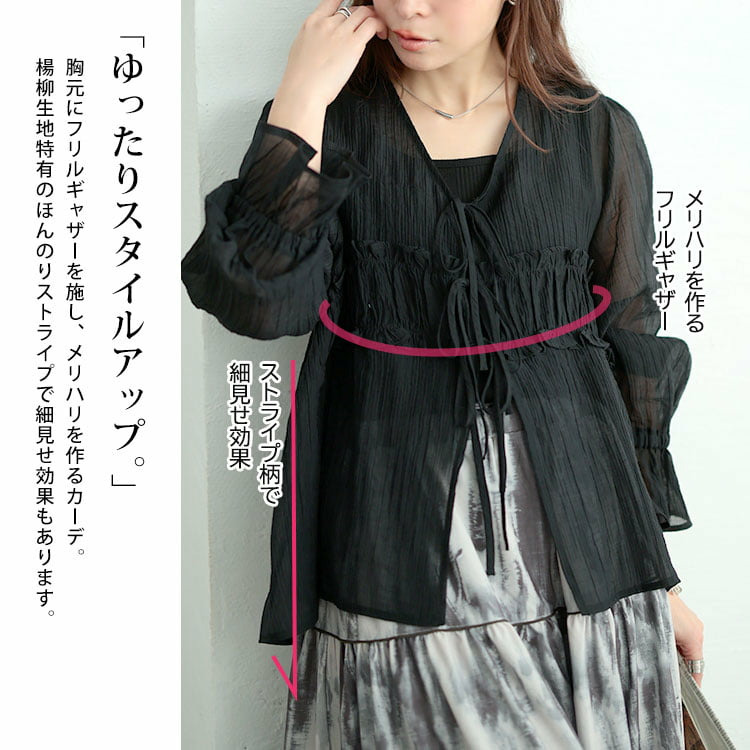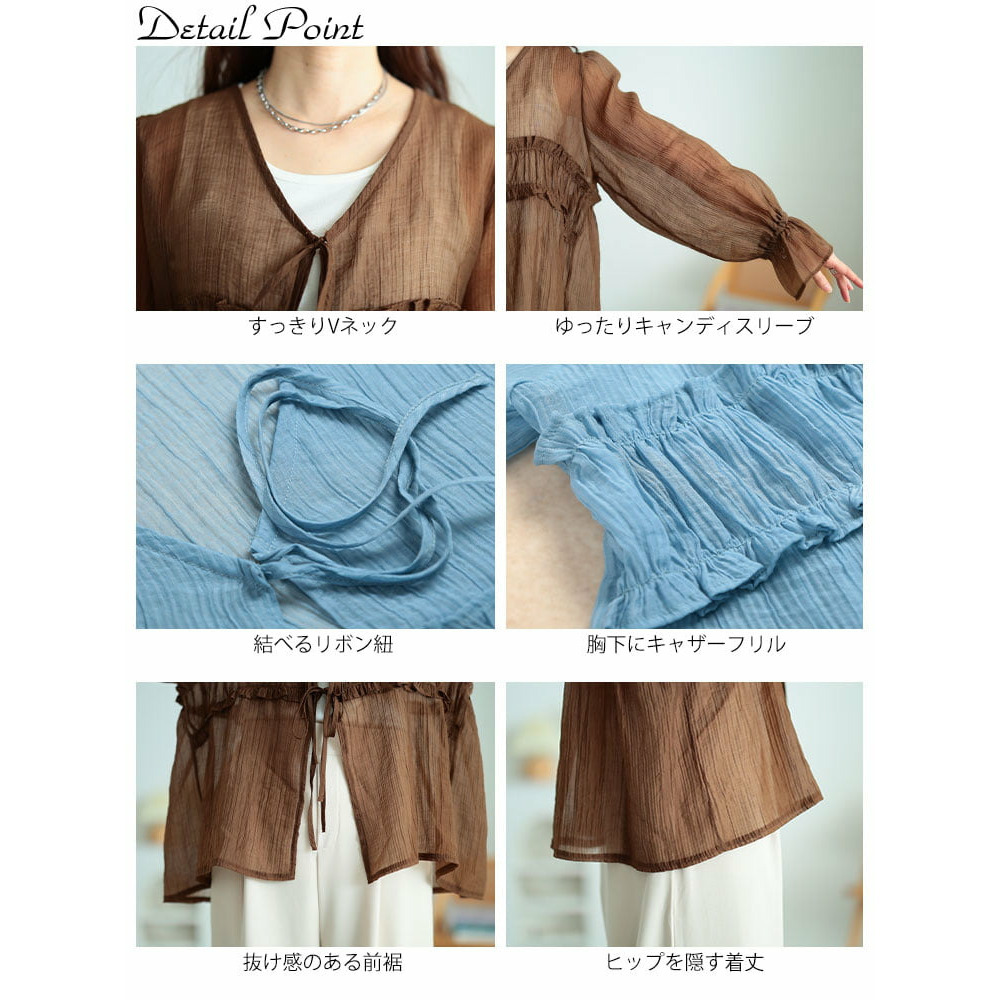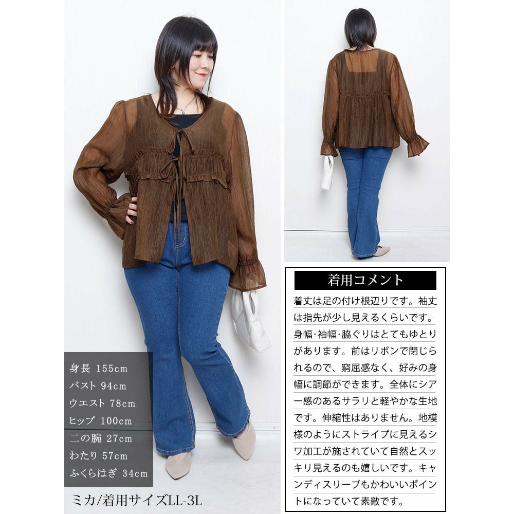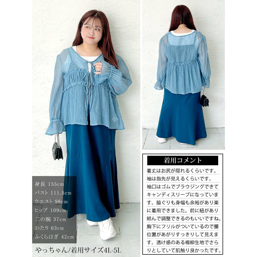 • 楊柳フリルシャツリボンカーディガン 大きいサイズ レディース13