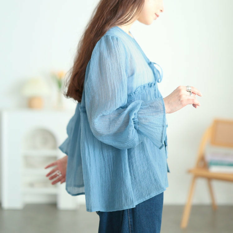 • 楊柳フリルシャツリボンカーディガン 大きいサイズ レディース17