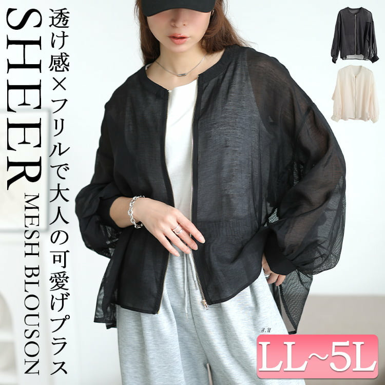 • バックラッフルメッシュ切り替えブルゾン 大きいサイズ レディース1