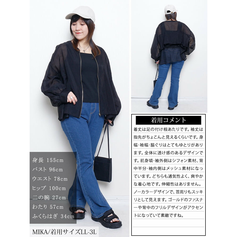 • バックラッフルメッシュ切り替えブルゾン 大きいサイズ レディース15
