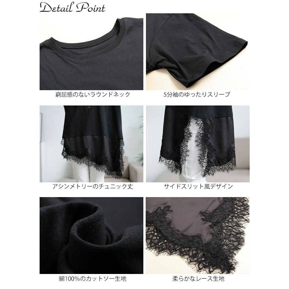 • レース&異素材切り替えアシメヘムチュニック 大きいサイズ レディース4