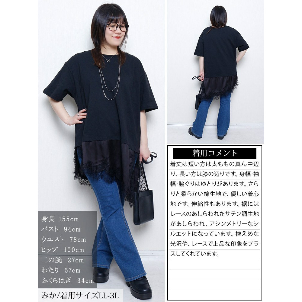 • レース&異素材切り替えアシメヘムチュニック 大きいサイズ レディース13