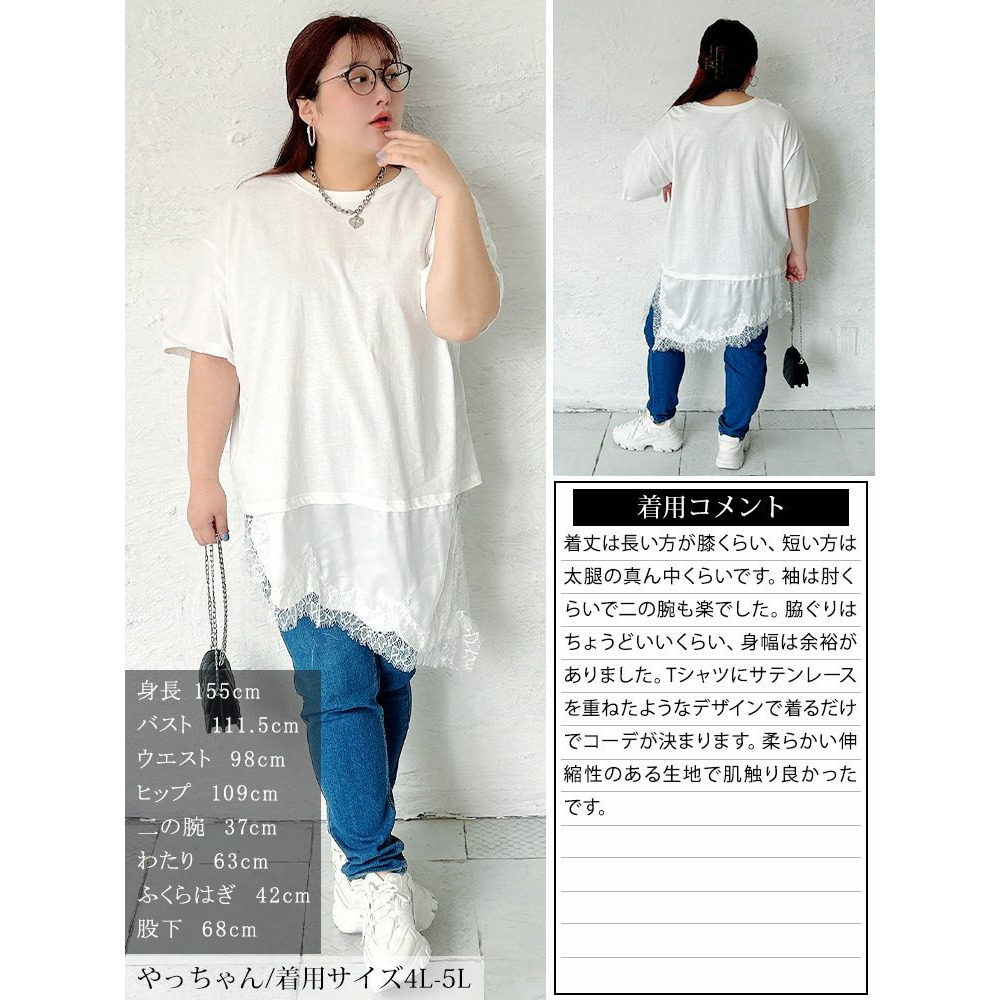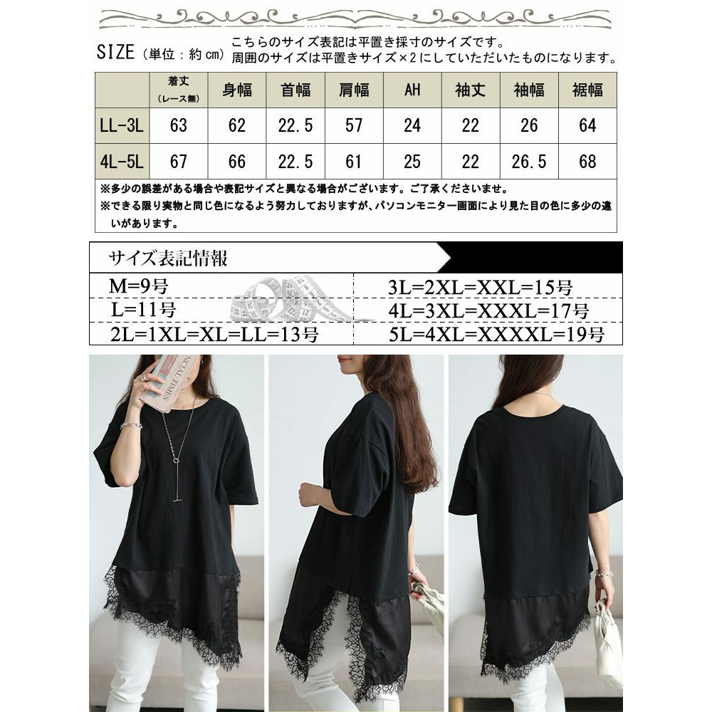 • レース&異素材切り替えアシメヘムチュニック 大きいサイズ レディース5