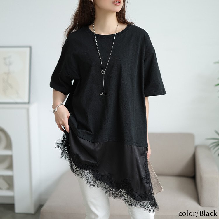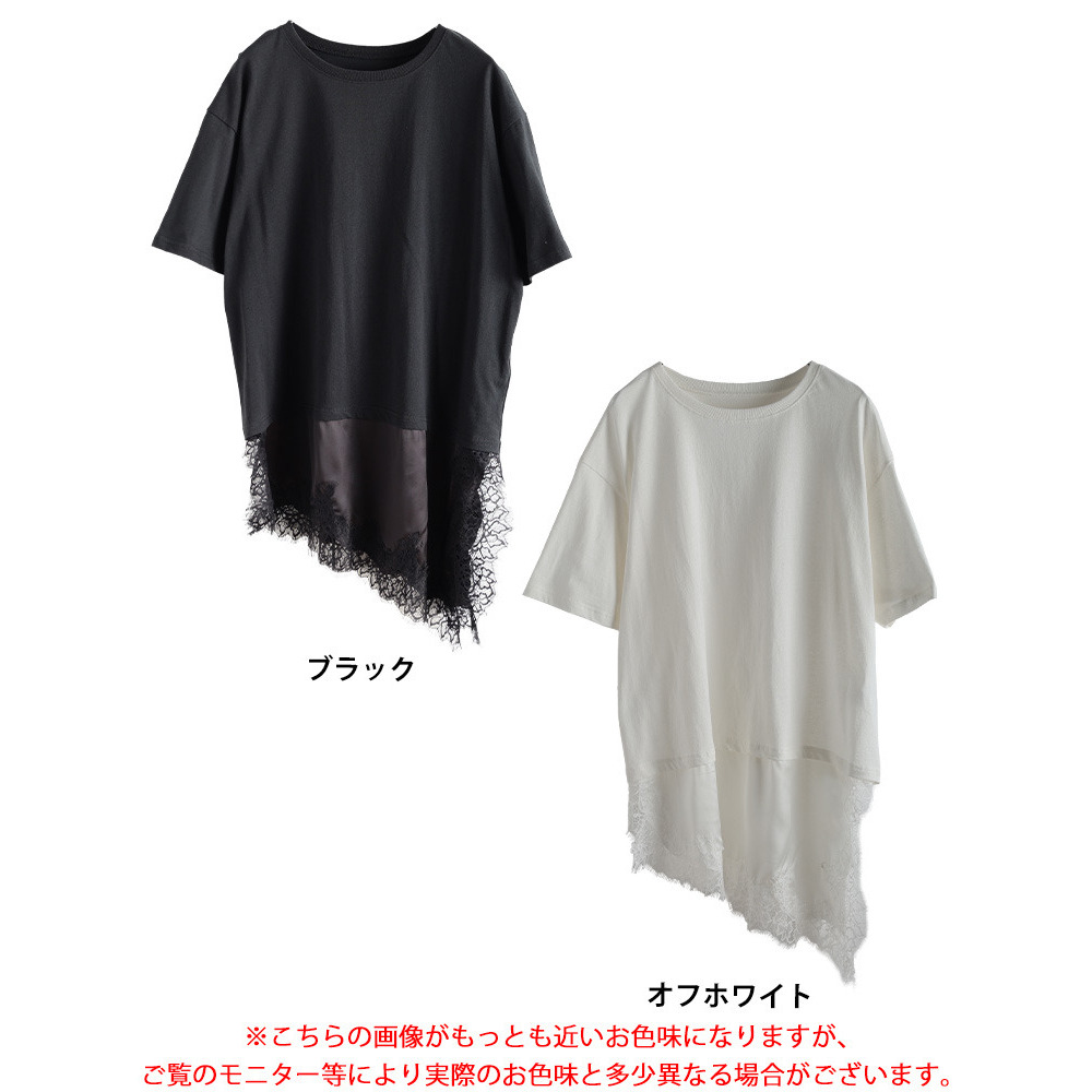 • レース&異素材切り替えアシメヘムチュニック 大きいサイズ レディース1