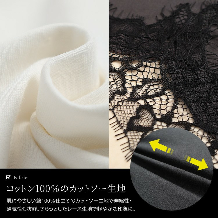 素材 本体:綿 100% 別布:ナイロン 100% レース:ポリエステル 100%