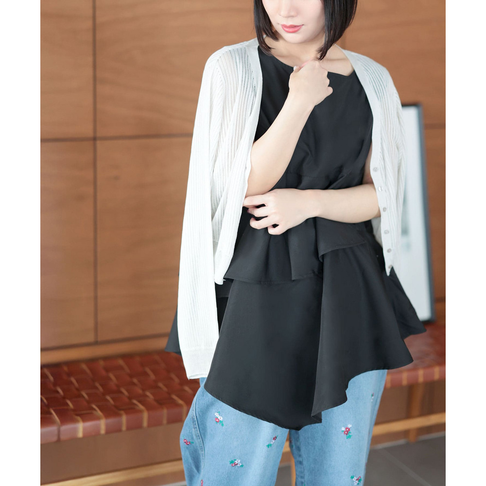 シンプルながらも存在感のあるアシンメトリーな裾ラインが、着こなしに上品な表情をプラス。