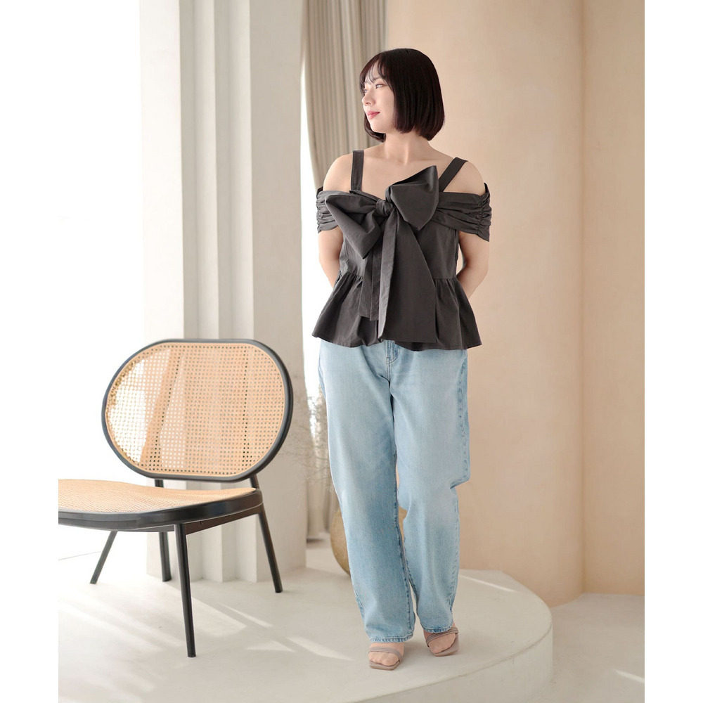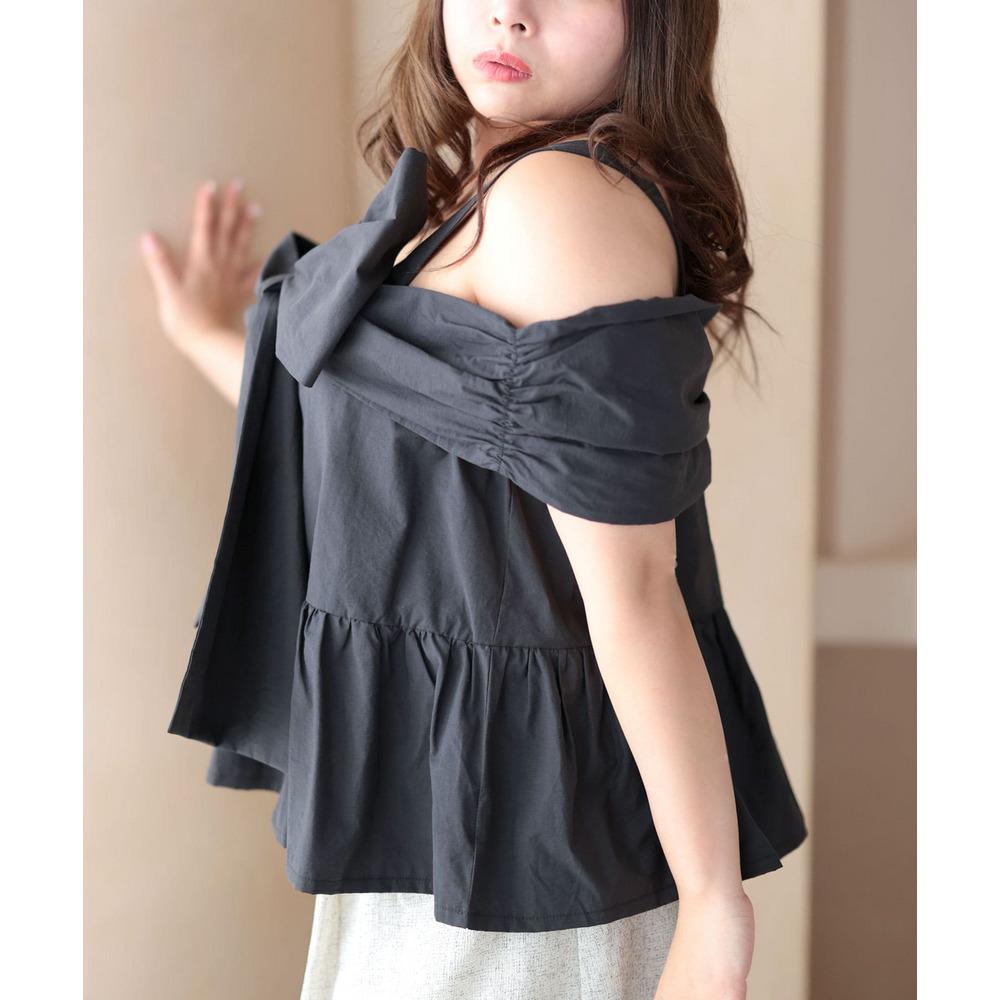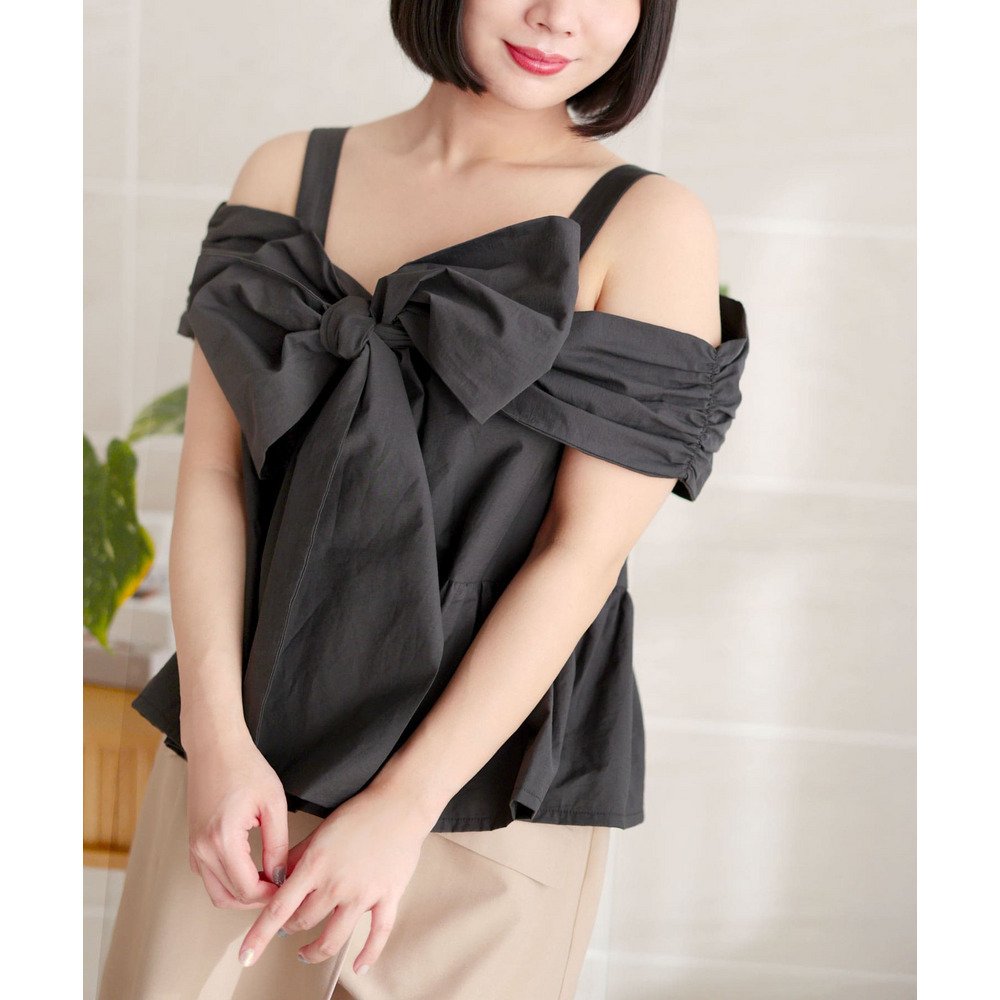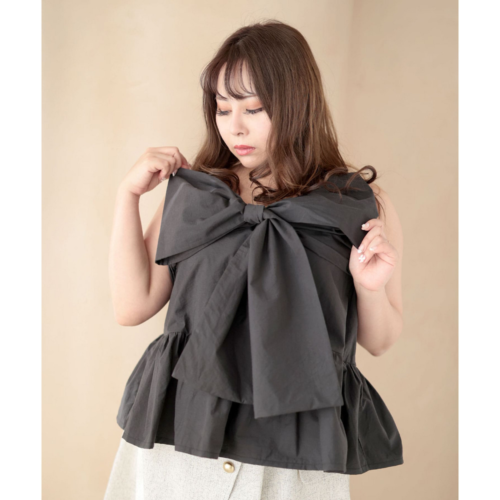 フロントの大きなリボンが最大の推しポイントのガーリートップス。