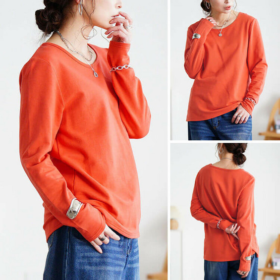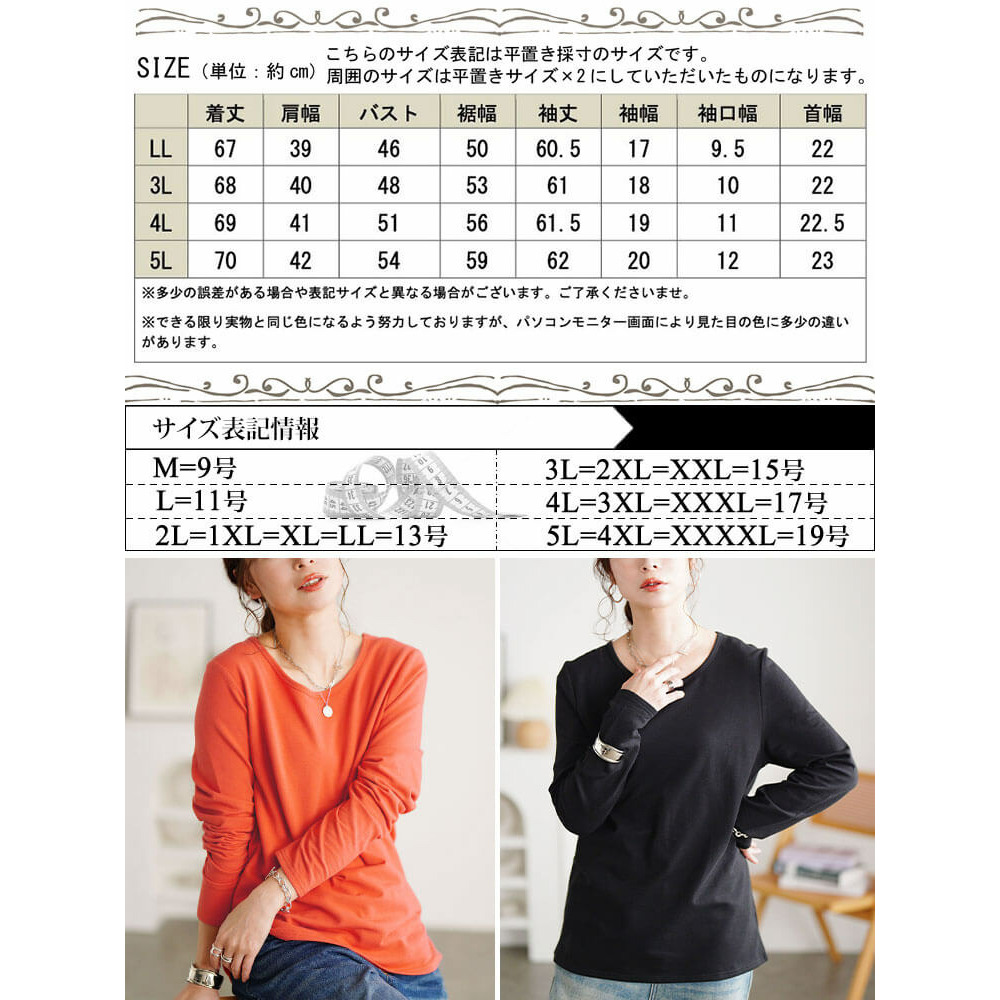 • 大きいサイズ レディース 裏起毛&保温&静電気防止クルーネックロンT9
