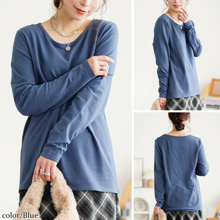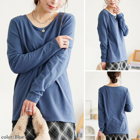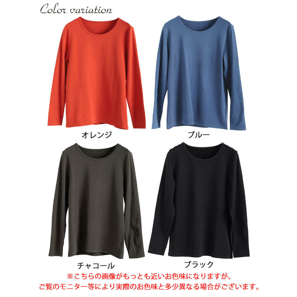 寒い季節に頼れる暖か高機能☆裏起毛&保温&静電気防止クルーネックロンT