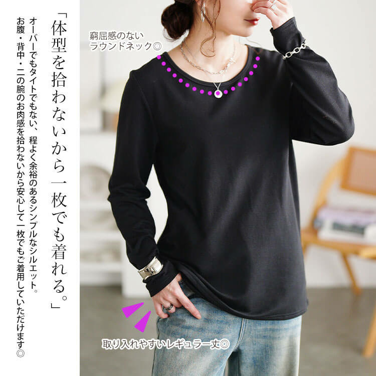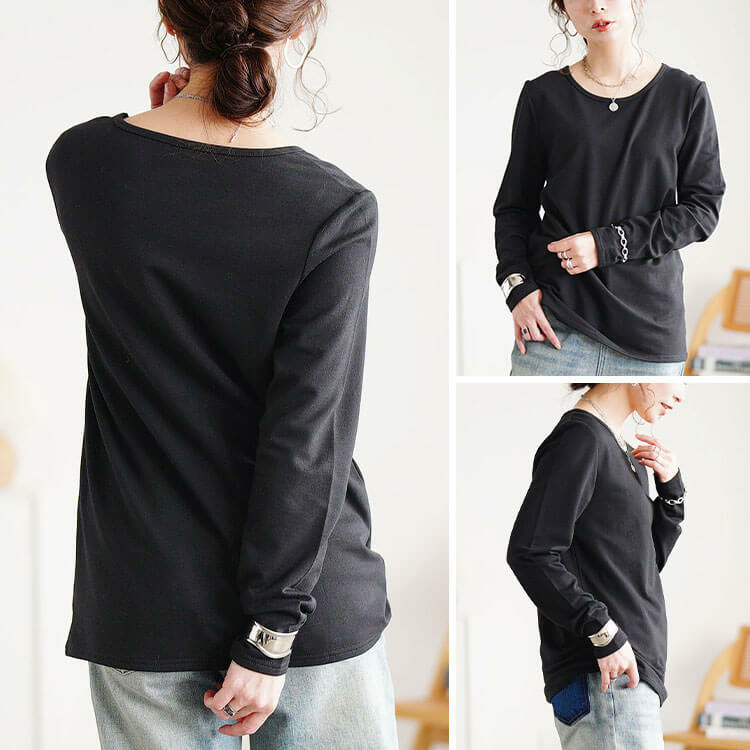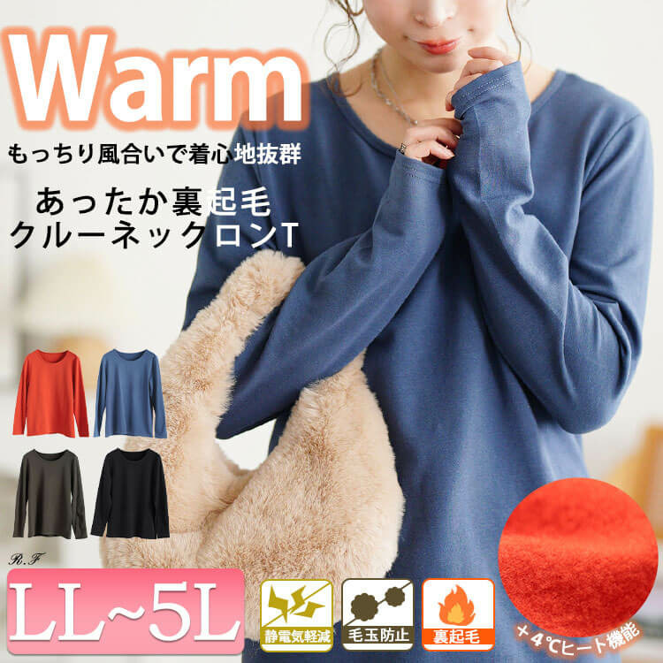 大きいサイズ レディース 裏起毛&保温&静電気防止クルーネックロンT