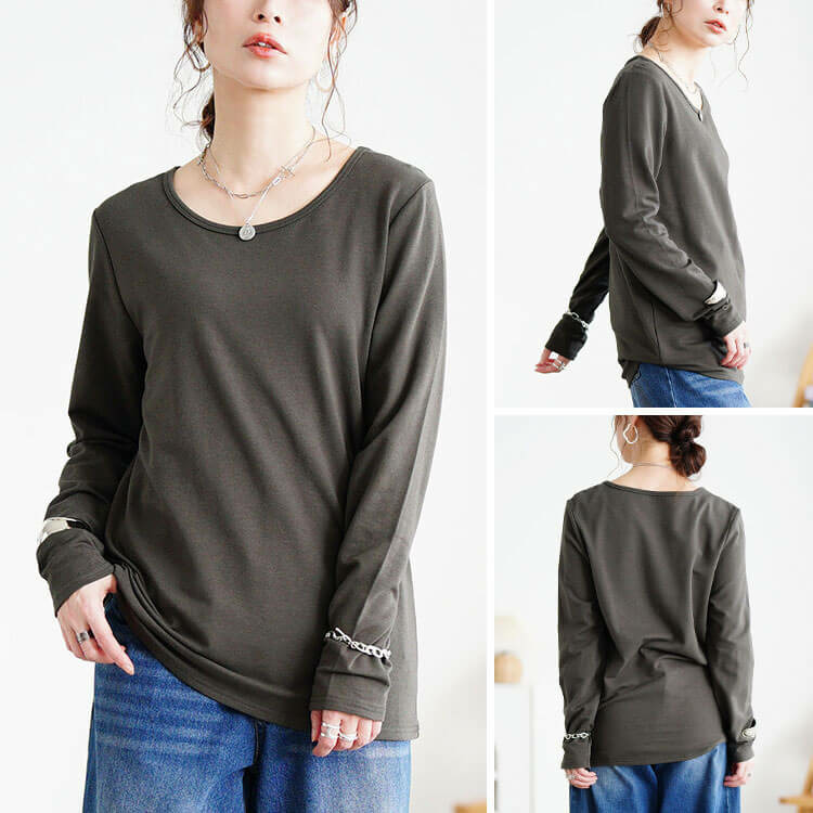 • 大きいサイズ レディース 裏起毛&保温&静電気防止クルーネックロンT11