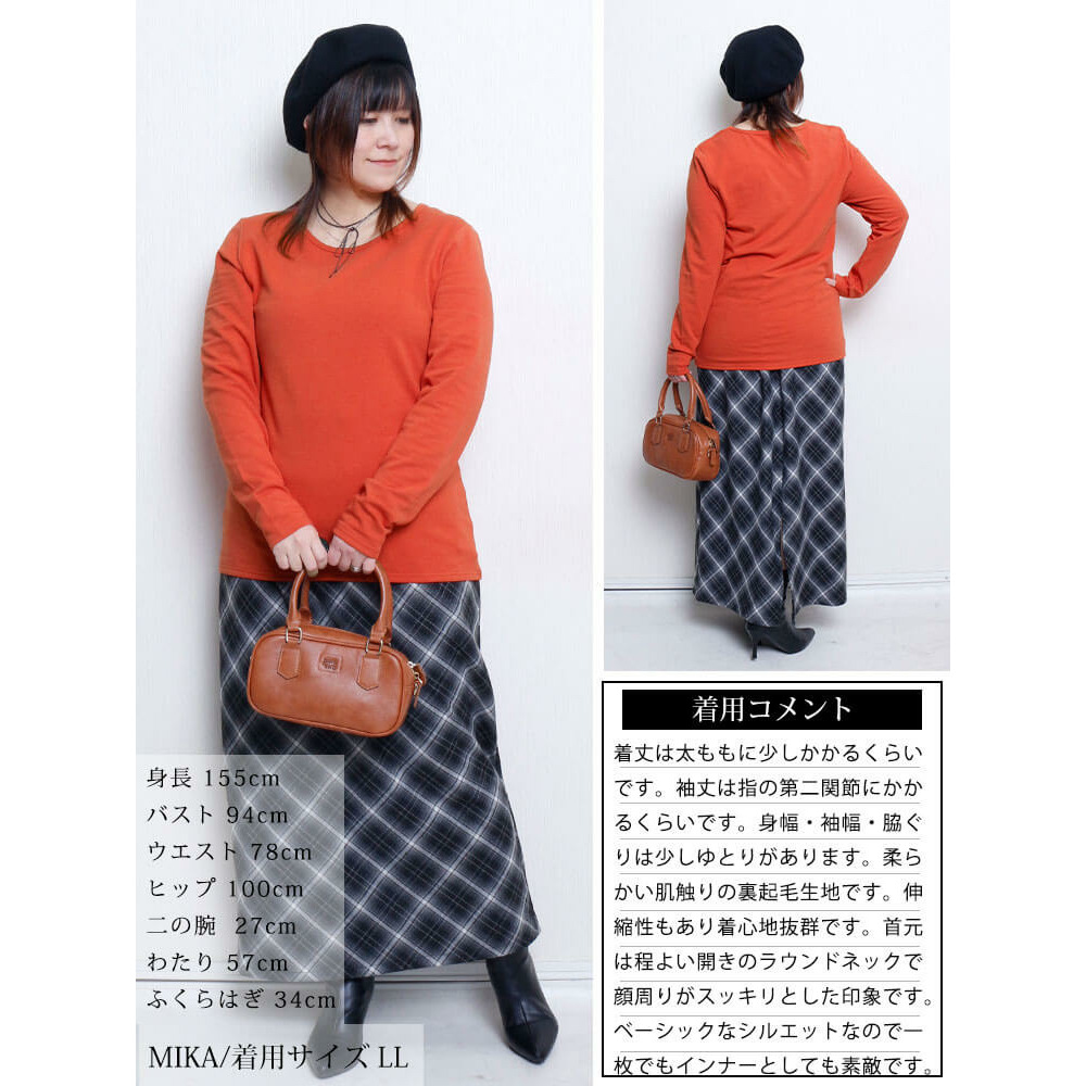 • 大きいサイズ レディース 裏起毛&保温&静電気防止クルーネックロンT2